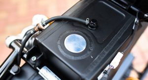 The concept motorcycle was first revealed as a 3D computer mockup in 2013, sporting a carbon fiber monocoque body shell described as “menacingly retro-futuristic”. By the time it made it into a very limited series production of only 100 units, the bike ditched the monocoque for a far more practical chromoly trellis tube frame. But don’t worry, the contraption still integrates carbon fiber, titanium, and aerospace quality steel.