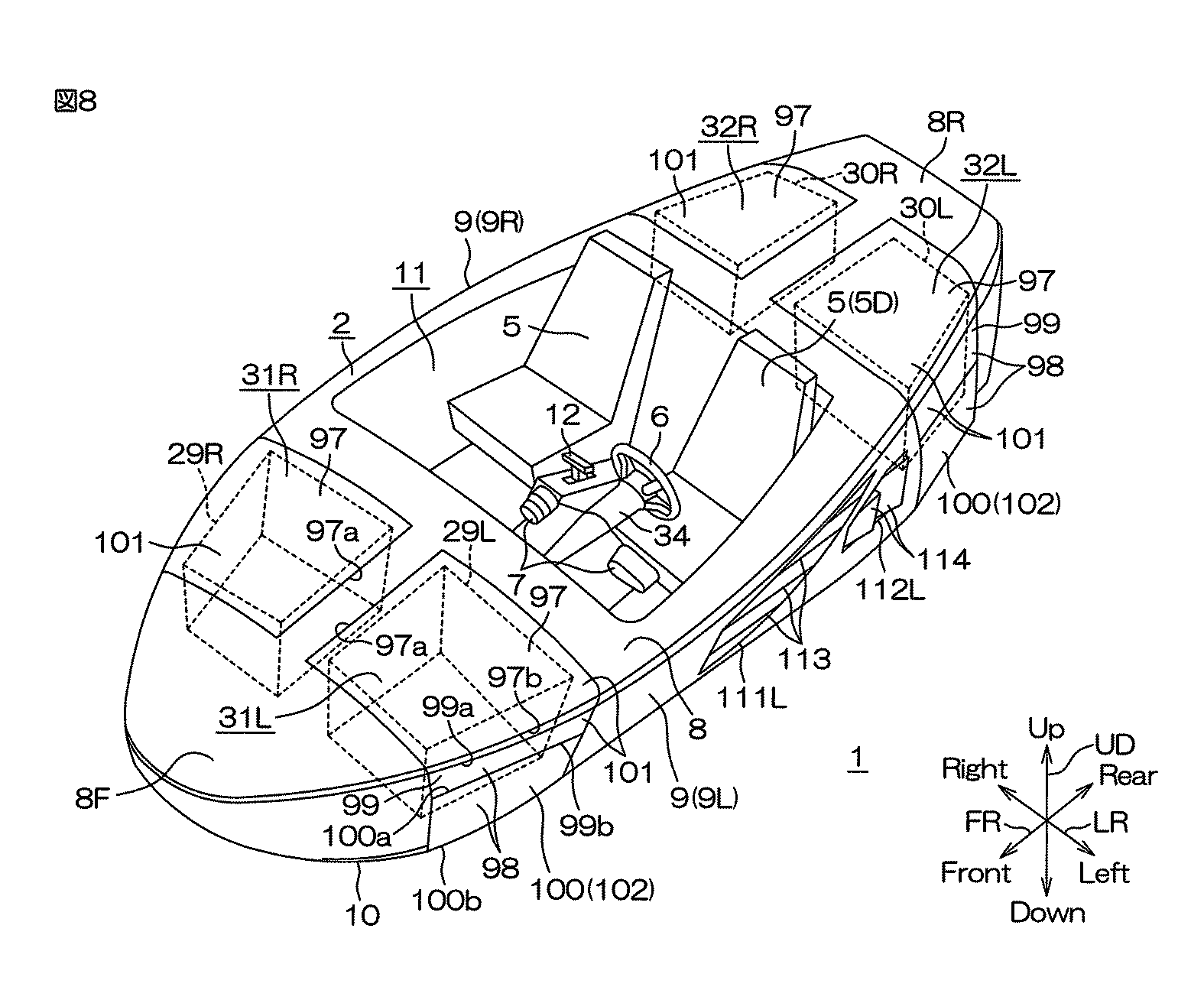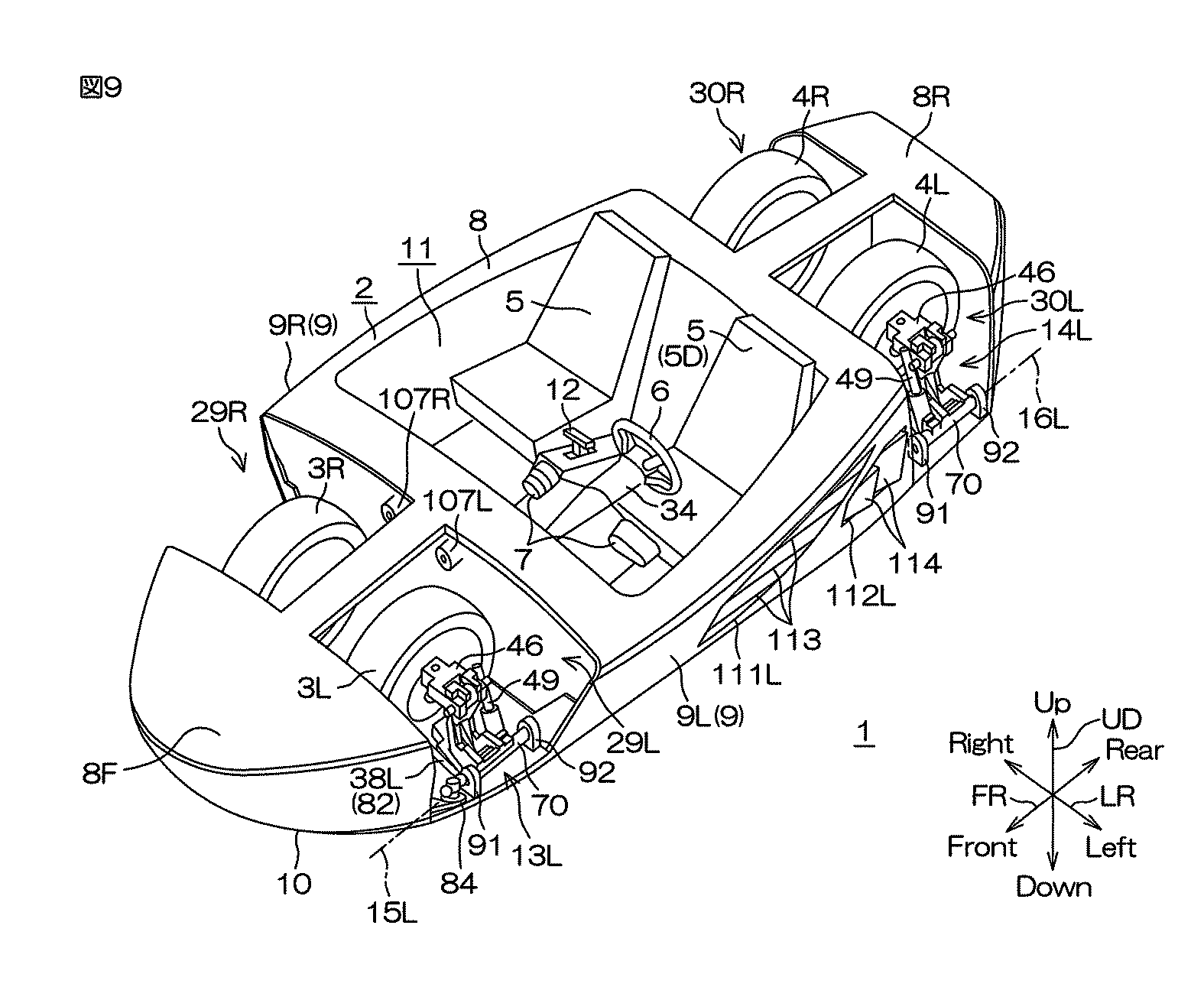 The Japanese filing says that the purpose of the patent is “to provide a vehicle including a structure which enables a wheel to be stored in a vehicle body without needing a large vehicle body width.”