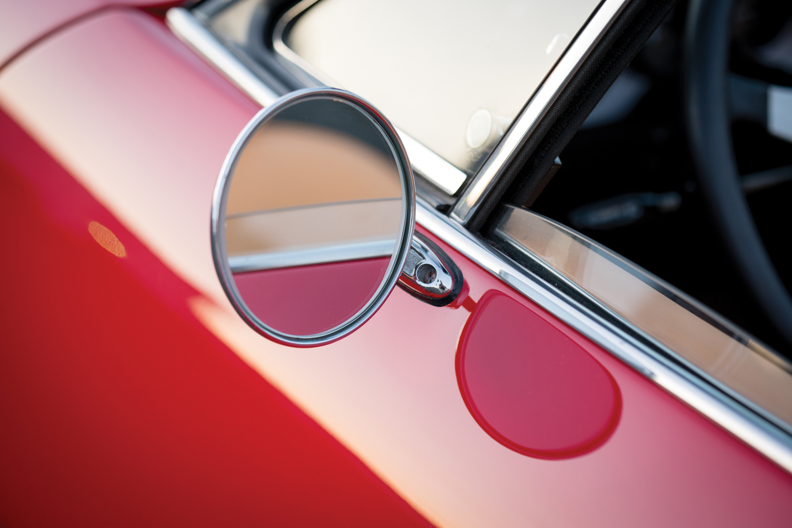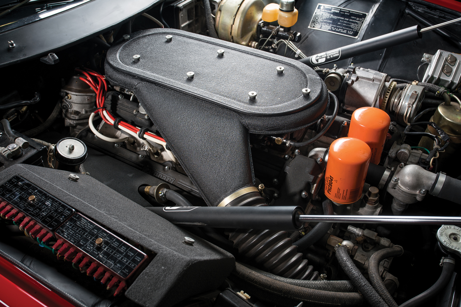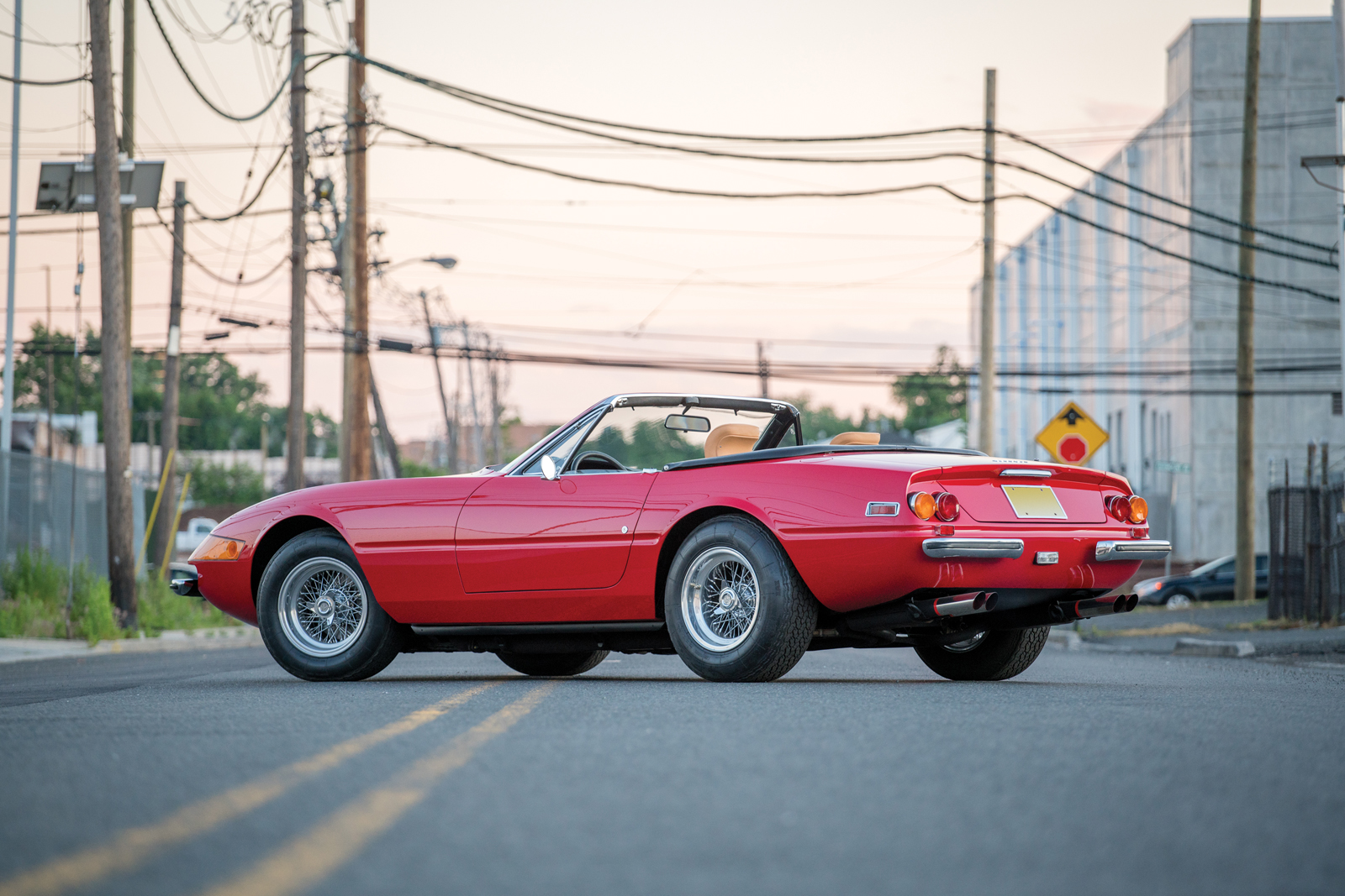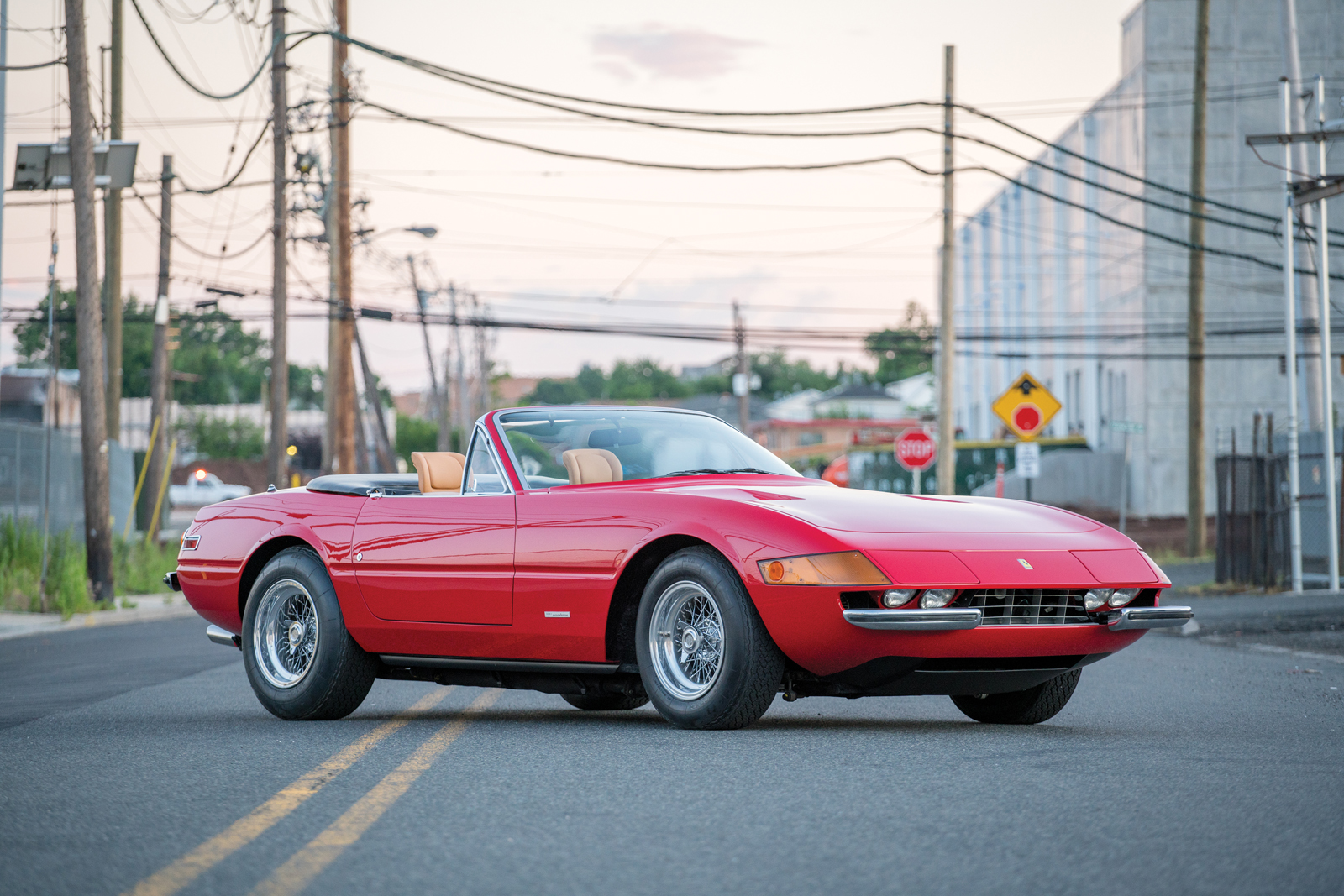 This particular example, chassis number 16847, was delivered new to the United States in silver over black and equipped with factory air conditioning. It traded hands across America numerous times until its owner in Pittsburgh had it redone in Rosso Corsa with a tan leather interior.