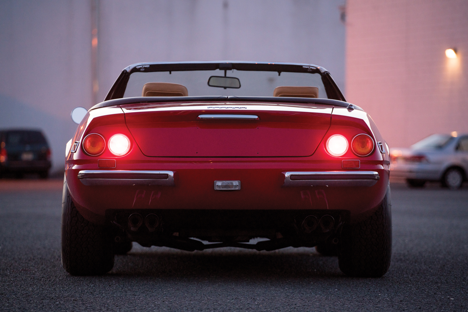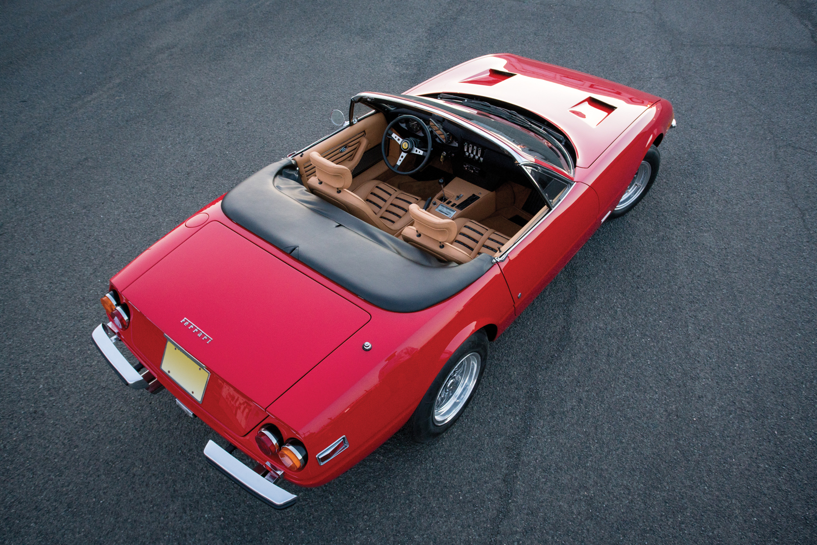 Unlike the Corvette-based replicas used in the show (and so many chop-jobs that ensued), the Prancing Horse you see here is entirely authentic. It’s the 91st of only 121 convertibles (and 1,406 coupes) made, making it at least as rare as the V12 roadsters that followed decades later.