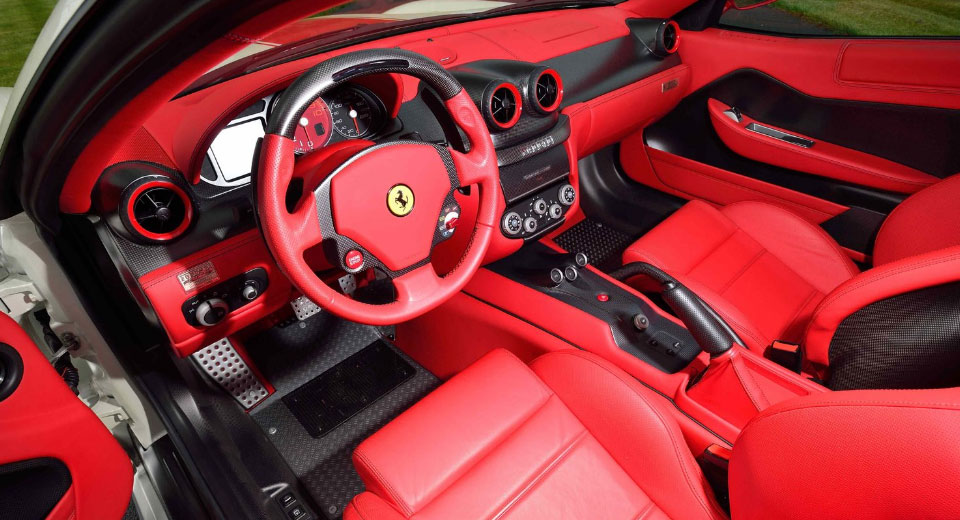 This car has only ever covered 1,965 miles and has an immaculate paint finish combining pearl white with red accents.