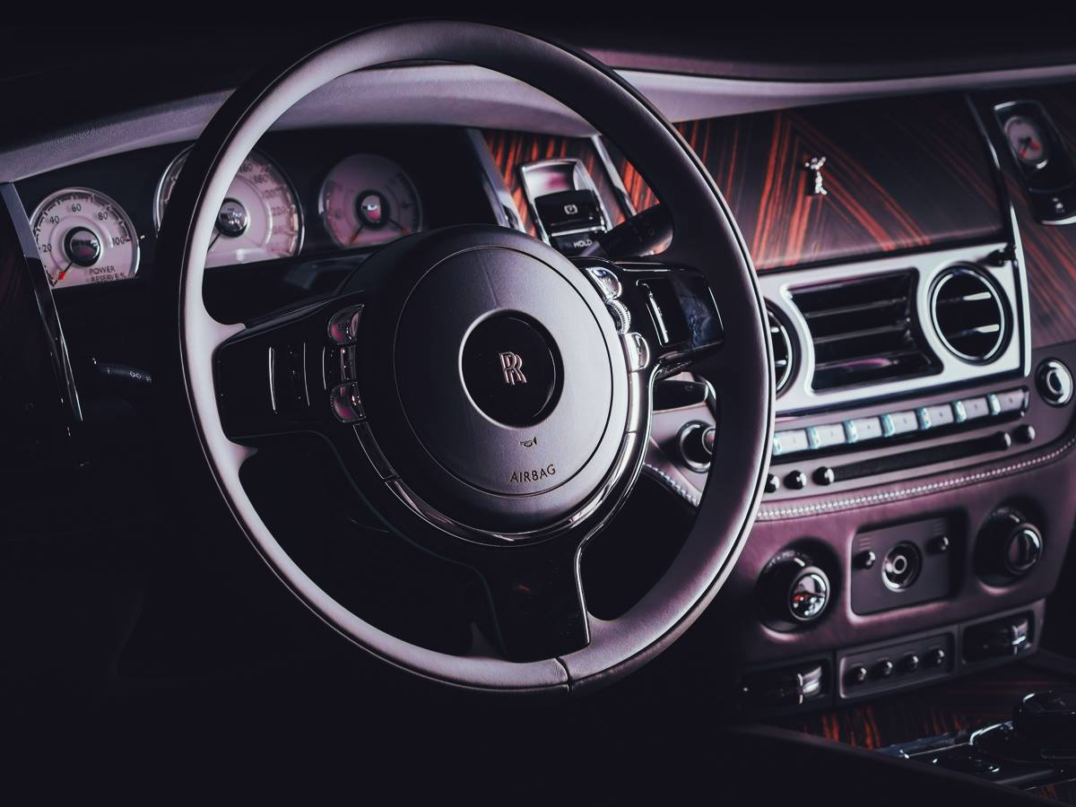 With the British automaker phasing out the Phantom line, these Bespoke commissions are based on the Wraith and its convertible counterpart the Dawn. The former features a two-tone silver paintjob offset by a purple coachline. Its interior is all done up in blue, purple, slate and black, trimmed with Macassar Ebony and ostrich leather.