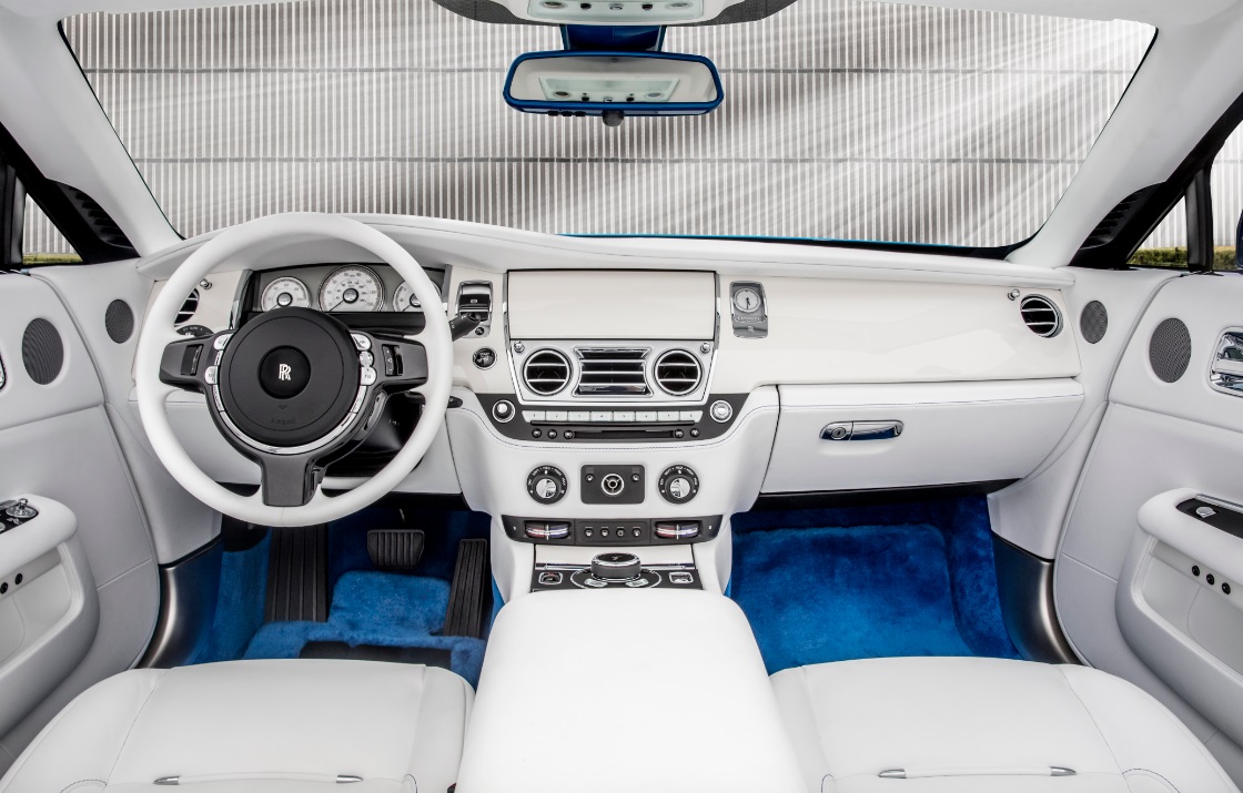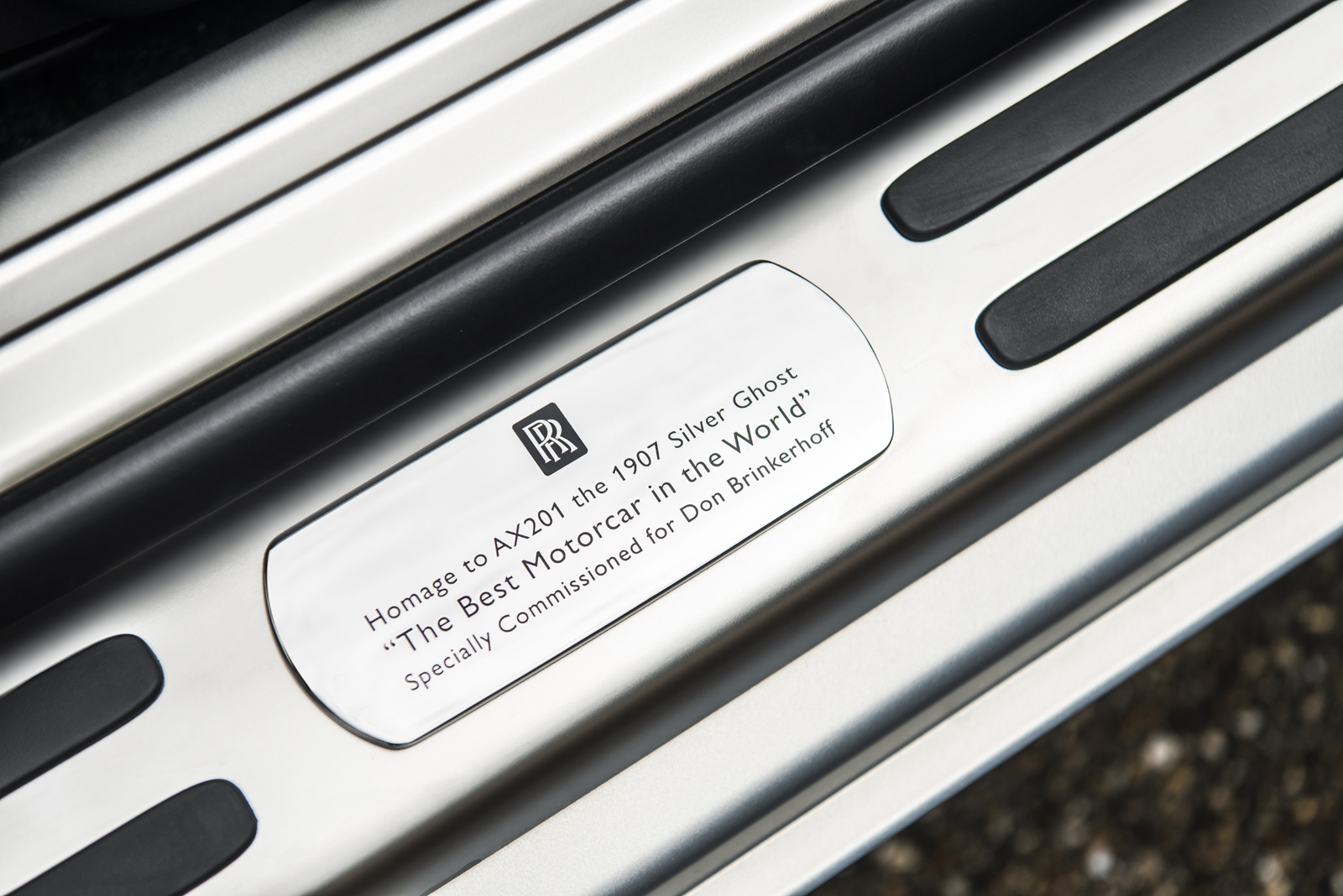 Finally another bespoke Dawn was delivered to noted Rolls collector Don Brinkeroff. It pays homage to the 1907 Rolls-Royce Silver Ghost with matte silver bodywork, silver Spirit of Ecstasy inlays in the piano black fascia, and pine green leather with black trim.