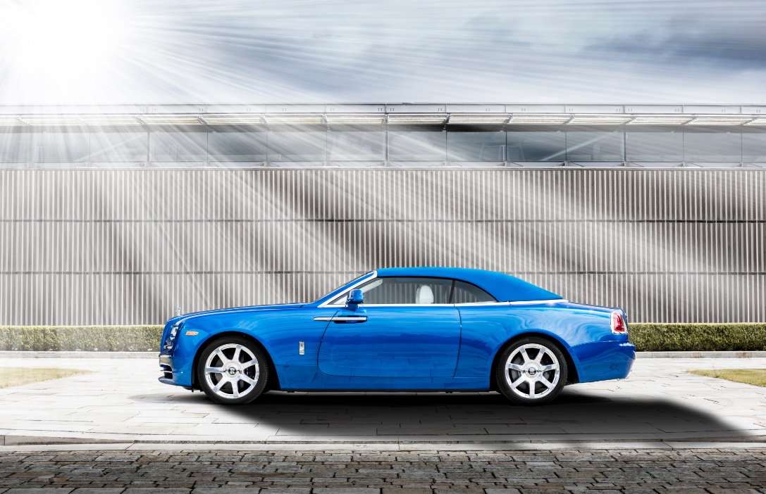 The Beverly Hills edition Phantom wasn’t the only custom Rolls-Royce on display at Pebble Beach this year. In fact it wasn’t even the only convertible Rolls-Royce. The British automaker also brought along three examples of the new Dawn, each customized by the company’s Bespoke division.