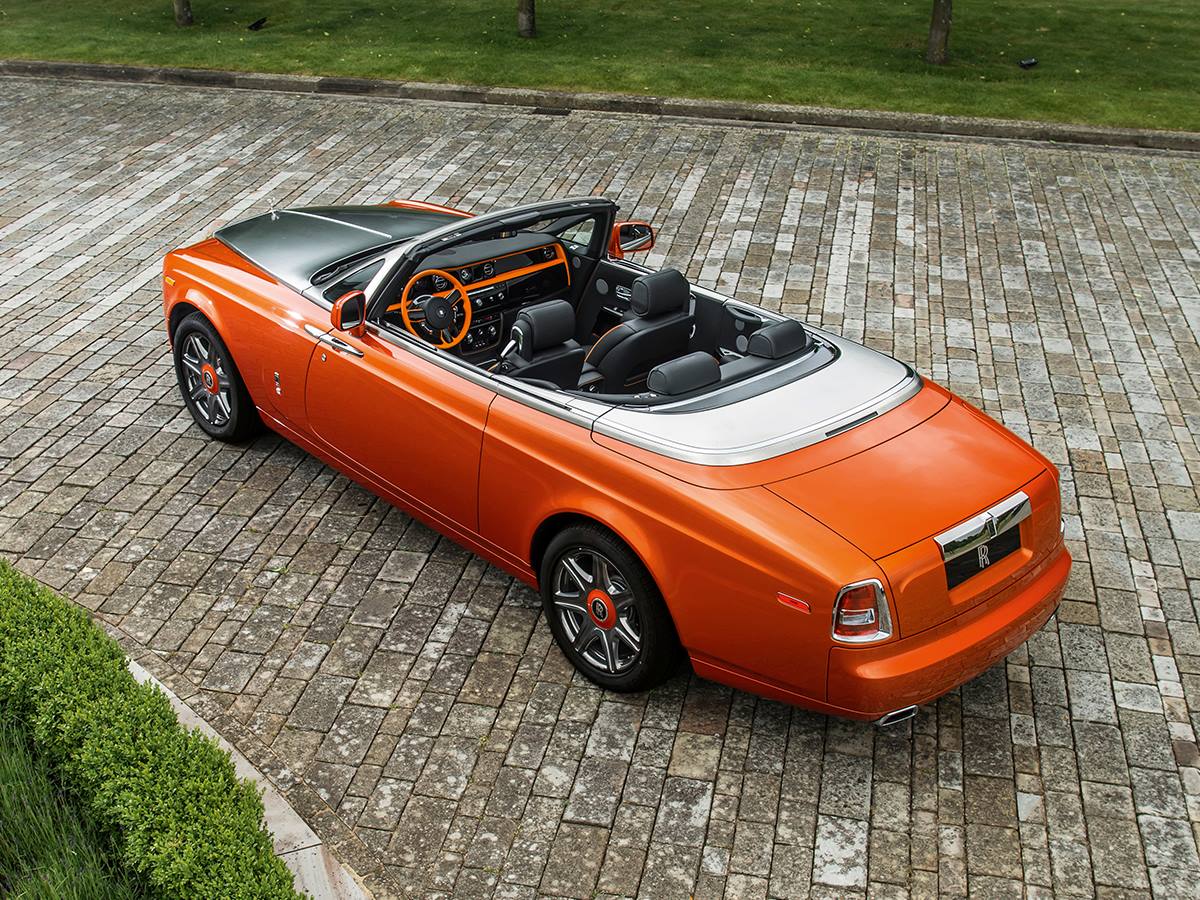 Commissioned by the dealership in the swanky Los Angeles-area enclave, the Rolls-Royce Phantom Drophead Coupe Beverly Hills Edition was presented at Pebble Beach this past weekend. It features a rather… um, eye-catching treatment, painted in Orange Metallic with a silver-tone trim, matching orange wheel hubs, and an open cockpit upholstered in Mandarin leather wand trimmed in Piano Black veneers.