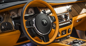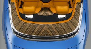 Take this one, for example, with its book-matched open-pore veneers on the roof housing deck. Its black-painted calipers and body-coloured wheel centers prove that no detail is too small when it comes to the Bespoke division.