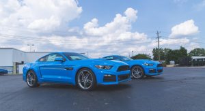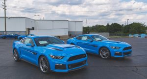 Roush have recently shared a few images with a pair of Grabber Blue 2017 Mustangs, one packing the RS1 kit, the other RS2.
