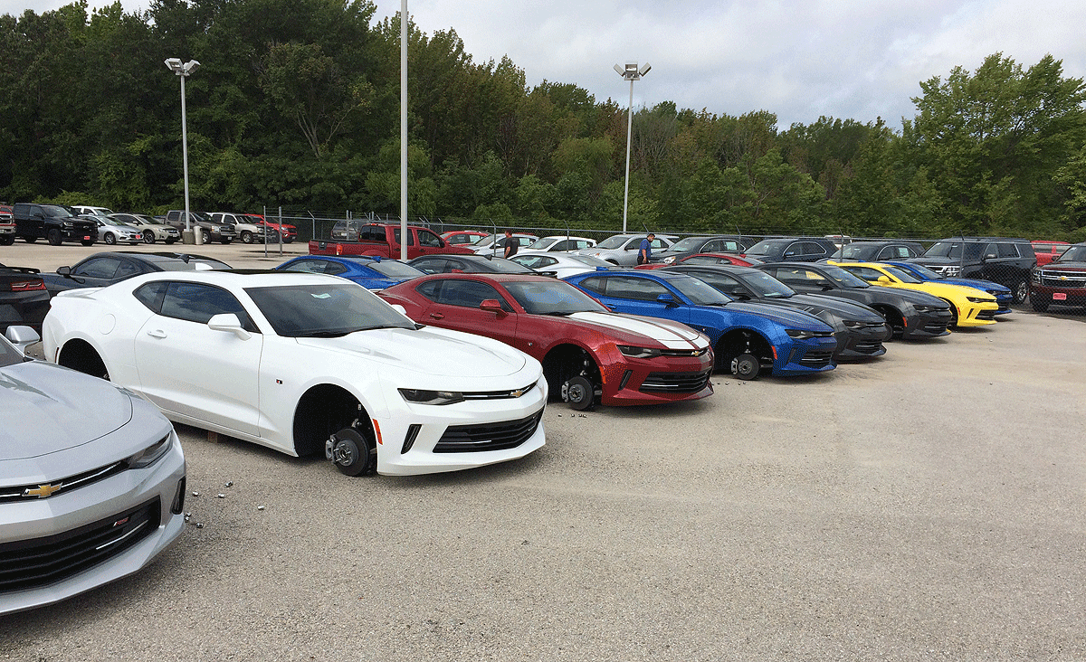 Cars targeted included multiple Chevrolet Camaros, Traverses and Silverado pickups, reports Automotive News.