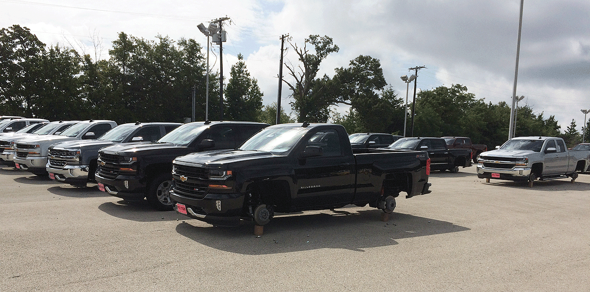 The wheels of 48 new vehicles were stolen from a Chevrolet dealership in Tyler, Texas over the weekend.