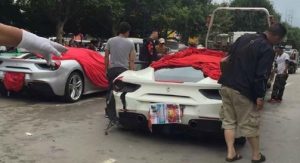 While swerving to dodge a dog on the road, a Ferrari 488 GTB driver rear ended a fellow motorist, who also happened to be driving another 488 GTB.