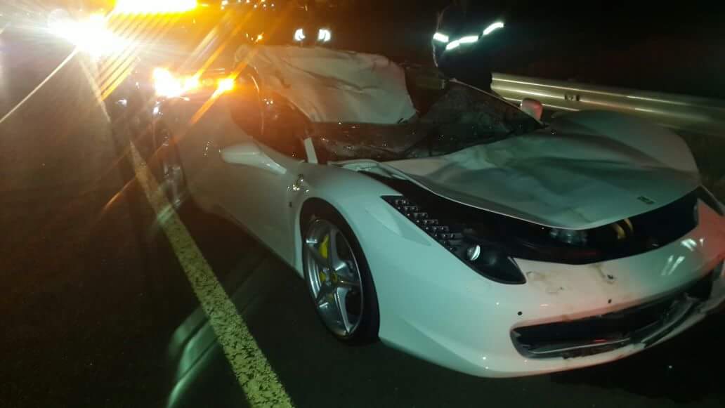 South African emergency services responded to a rather unusual accident, involving a Ferrari 458 Italia and a cow, the other night.