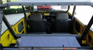 Nicknamed the “Toy Barn” by its owner, the car features a full list of additional upgrades and modifications, including adjustable independent suspension, brakes, wheels and tires – among many other things. In his pursuit to make it a beach cruiser, the owner even installed a roll cage in it.