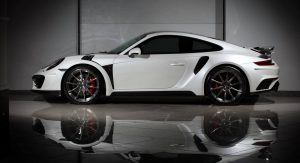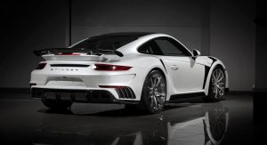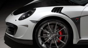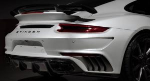 There are only a few subtle changes compared to the previous approach, but the Stinger’s new design is more chiseled, and better integrated in the 911’s body. Installed on a 911 Turbo, the package adds a plethora of carbon-fiber bits, new front and rear bumpers, side skirts, a new hood, and 911 GT3 RS-reminiscent air intakes on the side wings.