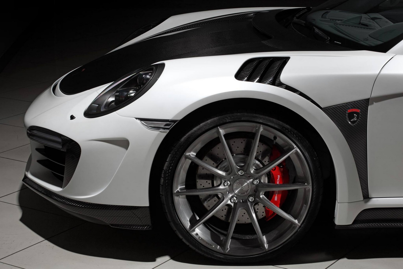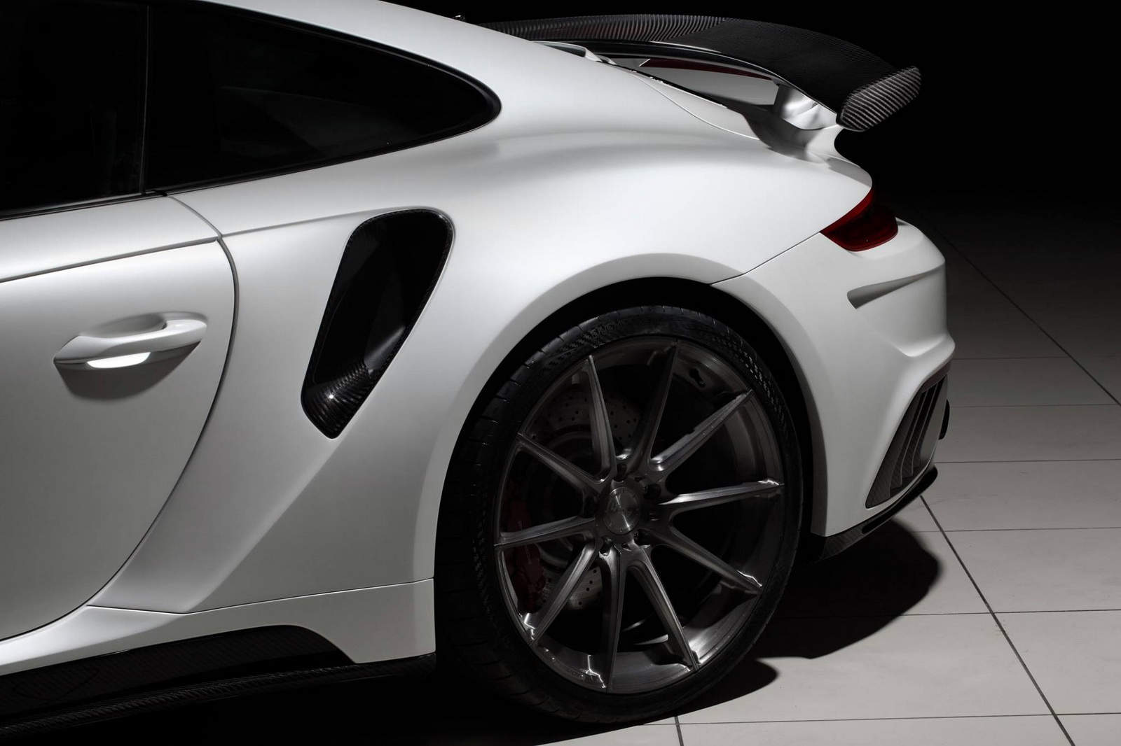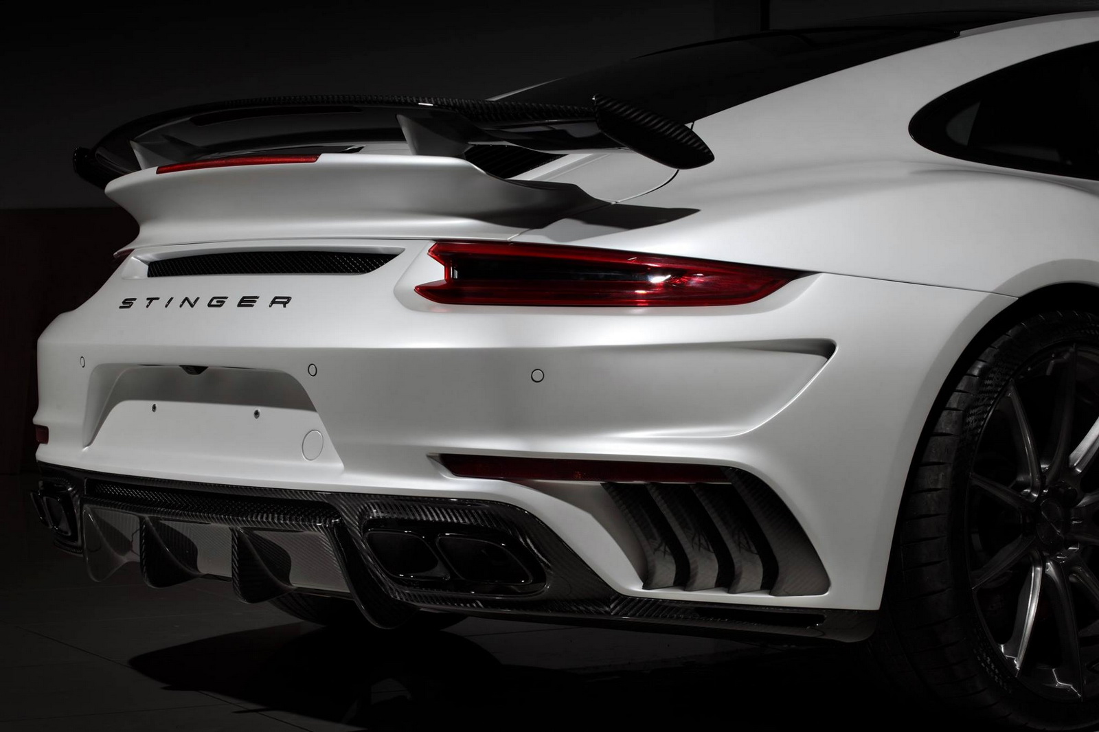 There are only a few subtle changes compared to the previous approach, but the Stinger’s new design is more chiseled, and better integrated in the 911’s body. Installed on a 911 Turbo, the package adds a plethora of carbon-fiber bits, new front and rear bumpers, side skirts, a new hood, and 911 GT3 RS-reminiscent air intakes on the side wings.