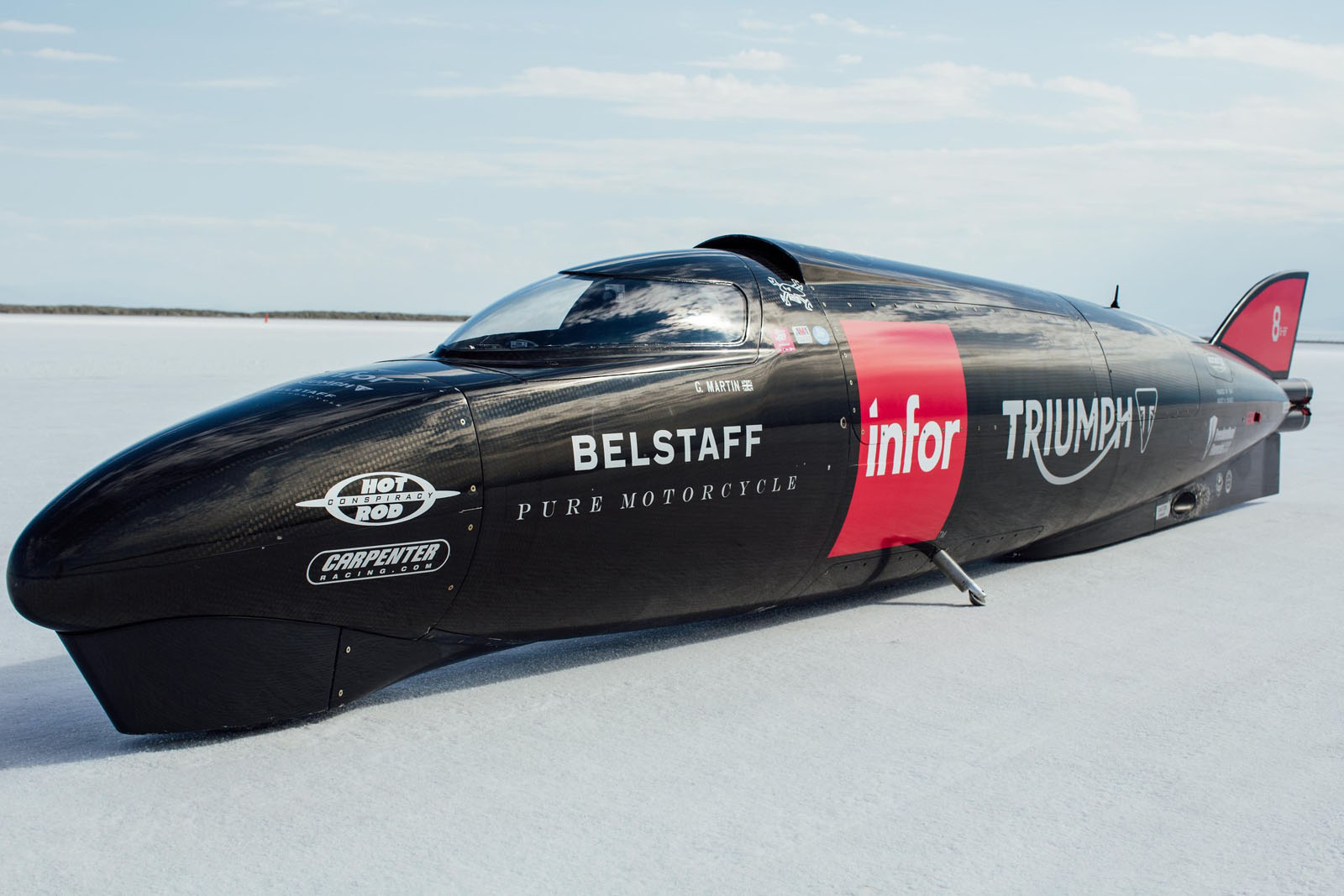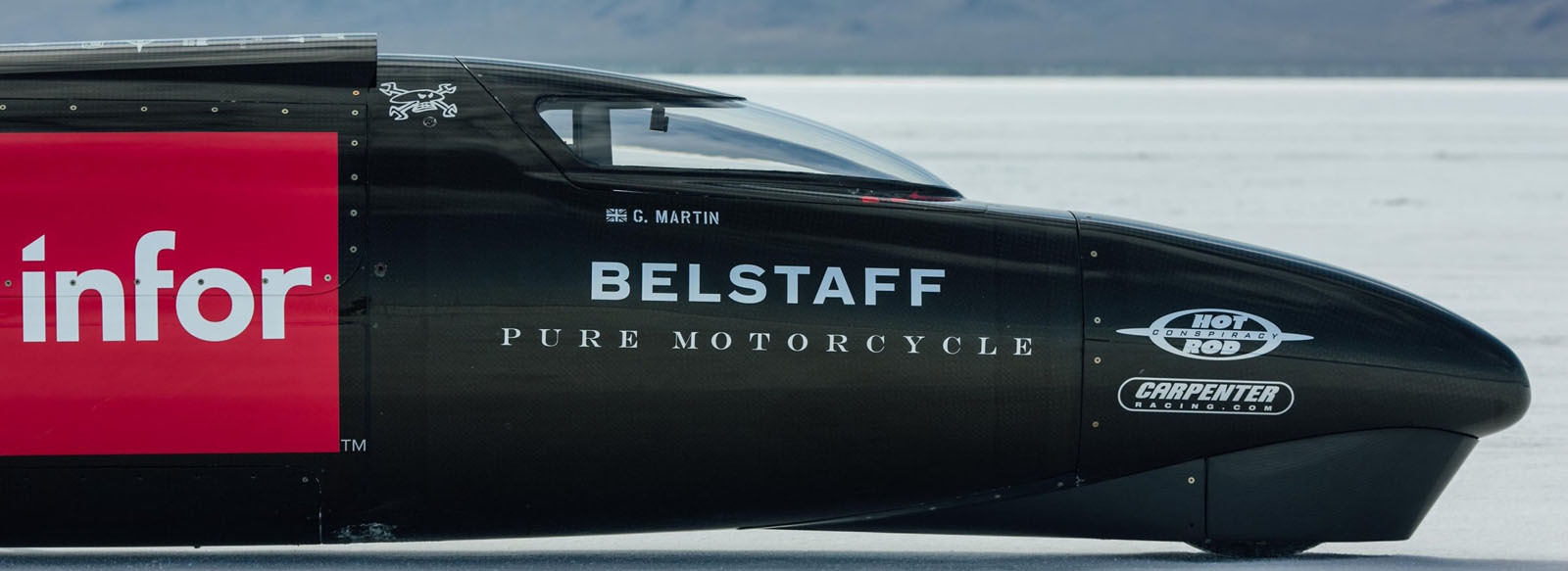 Commenting about the upcoming attempt, the bike’s designer, Matt Markstaller said “We achieved a great deal during our test week at Bonneville and feel we are in a great position to move ahead with our record attempt. Guy settled into the streamliner very quickly and impressed us with the speed in which he mastered both the motorcycle and riding on the salt.