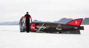 Isle of Man TT star Guy Martin will pilot the Triumph Infor Rocket Streamliner as he chases the current 376.8 mph (591.91 km/h) record and sets about eclipsing the 274.2 mph (441.28 km/h) top speed he set a couple of weeks ago in the highest speed ever recorded by a Triumph.