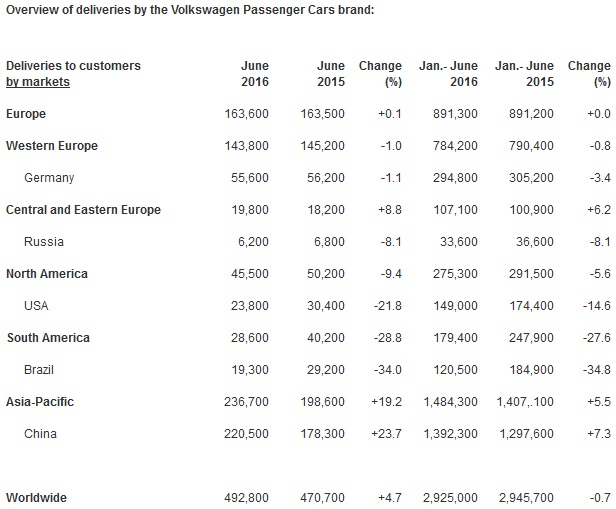 Despite Volkswagen’s continuous struggle with the cheating emissions scandal, sales of its Passenger Cars brand have only witnessed a minor drop in the first six months of 2016.