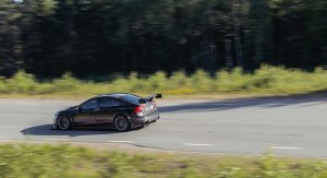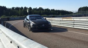Wearing neither the usual French racing blue (which Polestar has long since claimed as its own) nor the Swedish flag livery designed by Prince Carl Philip, the S60 TC1 looks even more sinister. All you can see is the carbon fiber and steel bodywork, and while it might look a little dull against a field of colorful competitors on race day, it looks pretty slick all by itself at Mantorp Park in Sweden where it’s been undergoing testing.