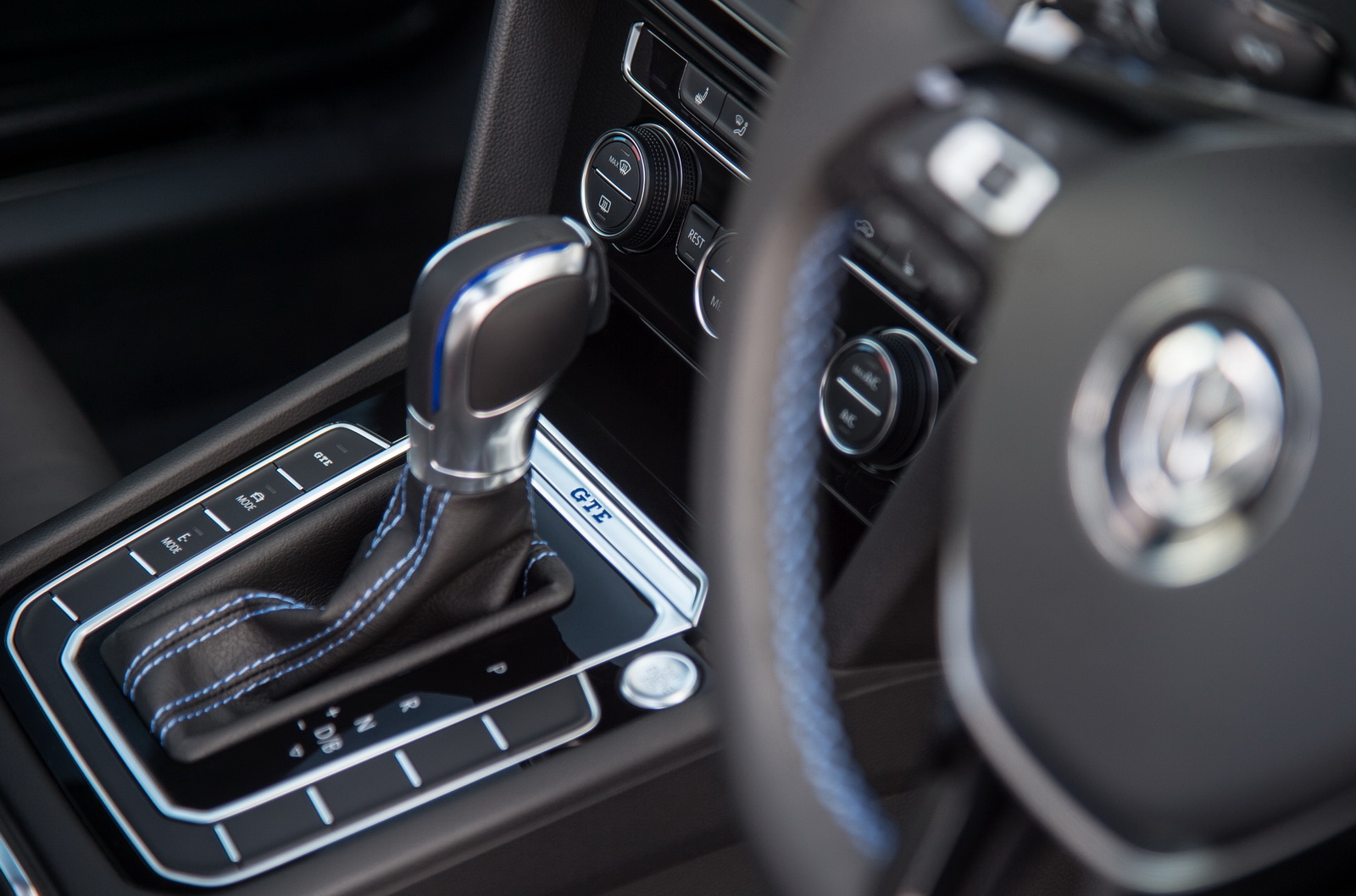 The cabin features blue ambient lighting, a leather-trimmed steering wheel with blue stitching, a GTE-specific gear knob while the seats are trimmed in Alcantara with Vienna leather side bolsters.