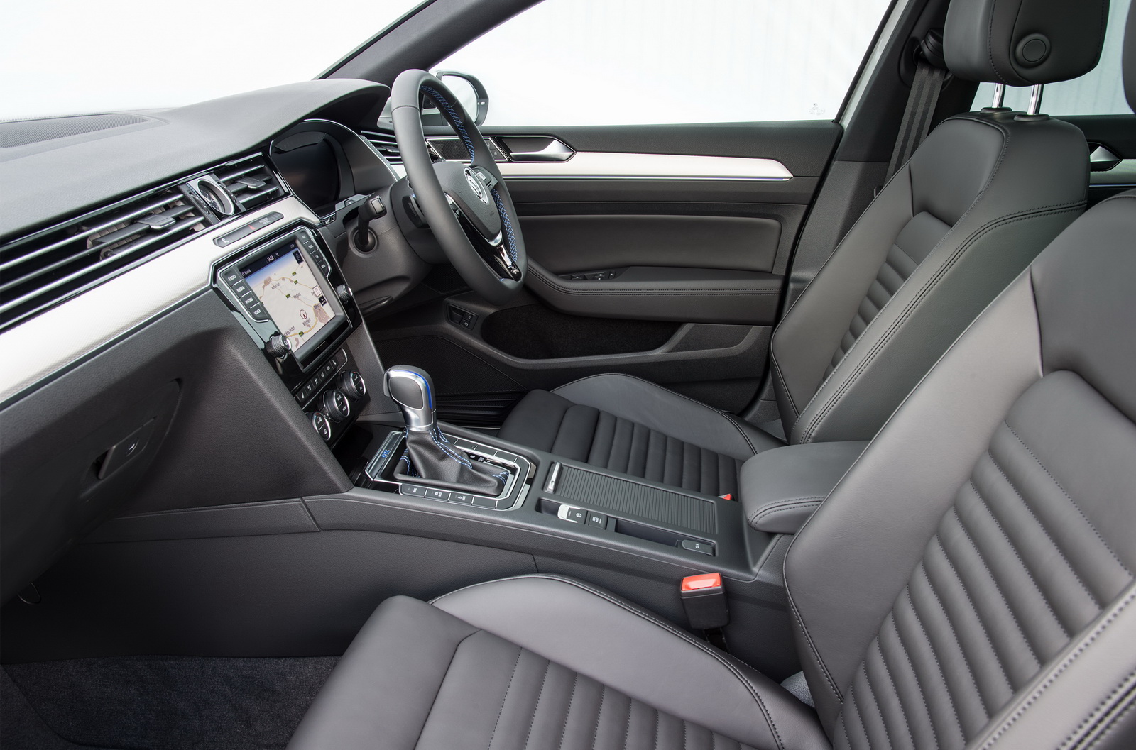 The first Passat to be offered with a plug-in hybrid powertrain certainly has the figures to back this claim: the combined output is rated at 215hp (218PS) and 295lb ft (400Nm) of torque with the official NEDC fuel economy figures set at 166mpg UK (1.6lt/100km) and just 39g/km of CO2 emissions.