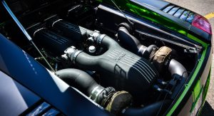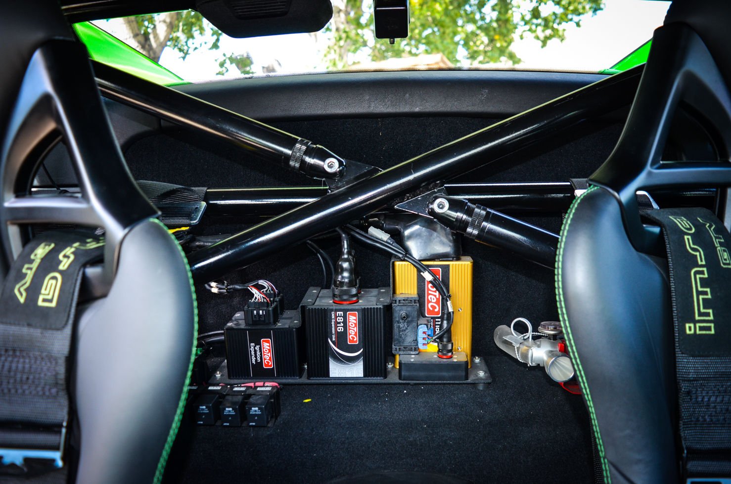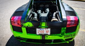 That’s 3.1 times more powerful than the LP 570-4 Superleggera, and all thanks to a twin-turbo system and a plethora of engine mods, implemented by Heffner Performance. The standard 5000 cc 40 valve, DOHC V10 was fully rebuilt and now accommodates 10:1 CP Pistons, Carillo billet connecting rods, custom camshafts, ported heads, oversize valves, ported intake manifold, dual 1100 hp fuel pumps, 2000 hp intercoolers, 10 2000cc injectors, and, most importantly two bb turbos with twin Tial 50mm blow-off-valves. Oh, and it redlines at 8500+ RPM.