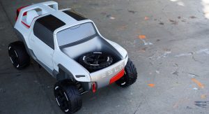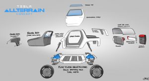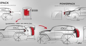 And to make things even more cooler, the designer reinterpreted the jerry-can used on various off-roaders as an external battery pack – mounted where we use to see the spare wheel on aging SUVs. The Tesla Allterain could fit two of these backpack range extenders.