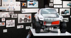 Described as technical, sustainable and rugged, the Allterrain features a sliding C-Pillar that can accommodate a soft-top in order to provide protection for the rear passengers. The elements are removable, so it can become a quirky pick-up if needed.