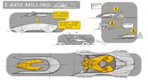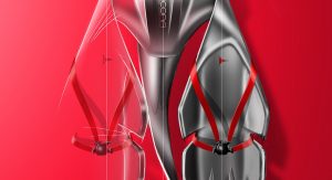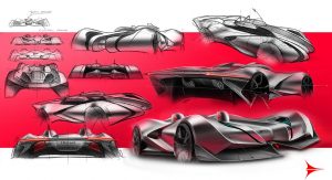 Sitting just behind the passenger cell is the mid-mounted powertrain, somehow suspended between the rear wheels and making way for an open tail. The insane design then continues at the back with a large active spoiler and thin LED taillights.