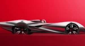 At the front it includes two sharp splitters, extending out from the front bumper and including active flaps. The short hood flows seamlessly to the open-air cockpit with seating for two in low-slung comfort.