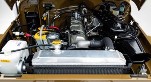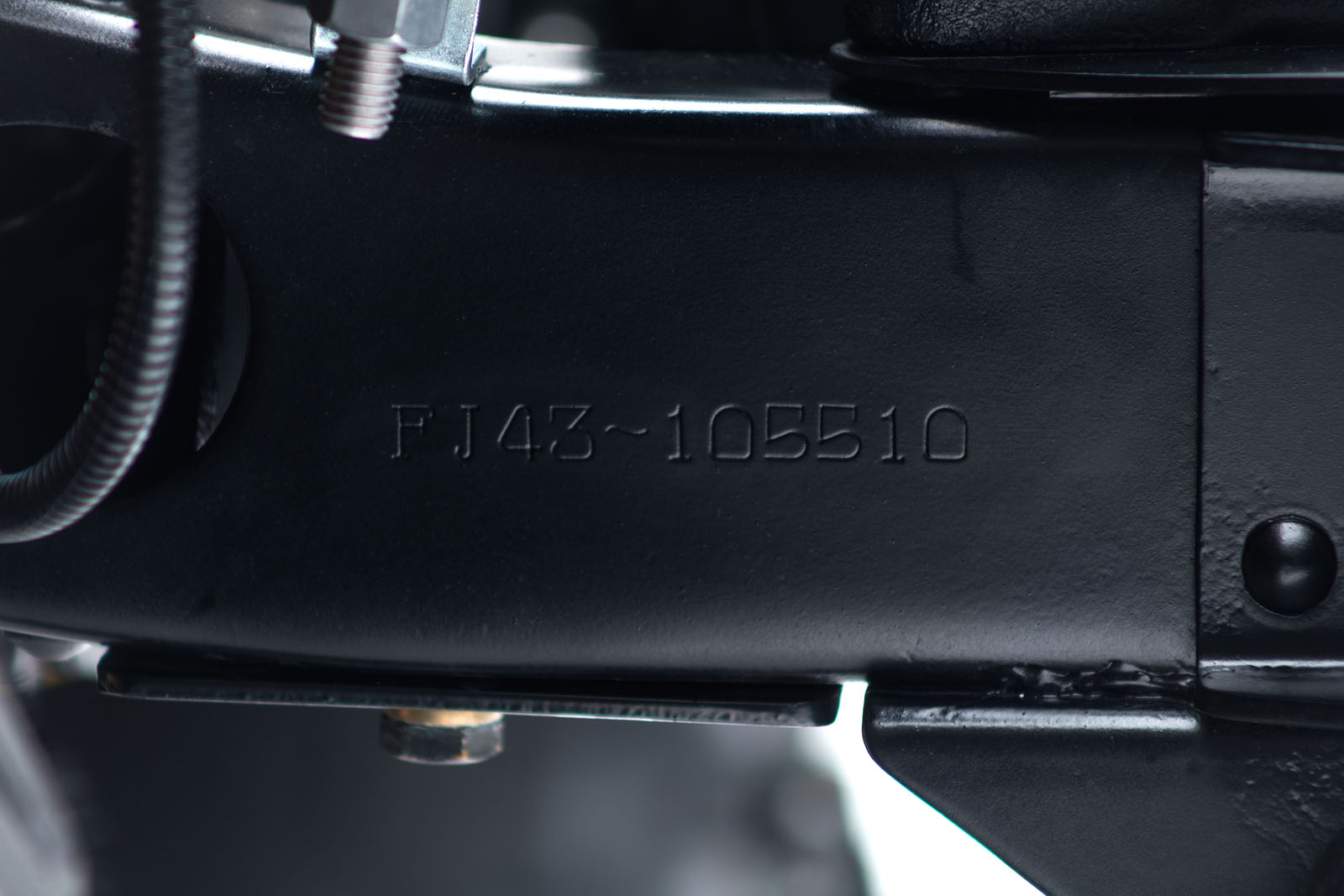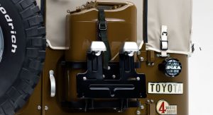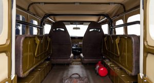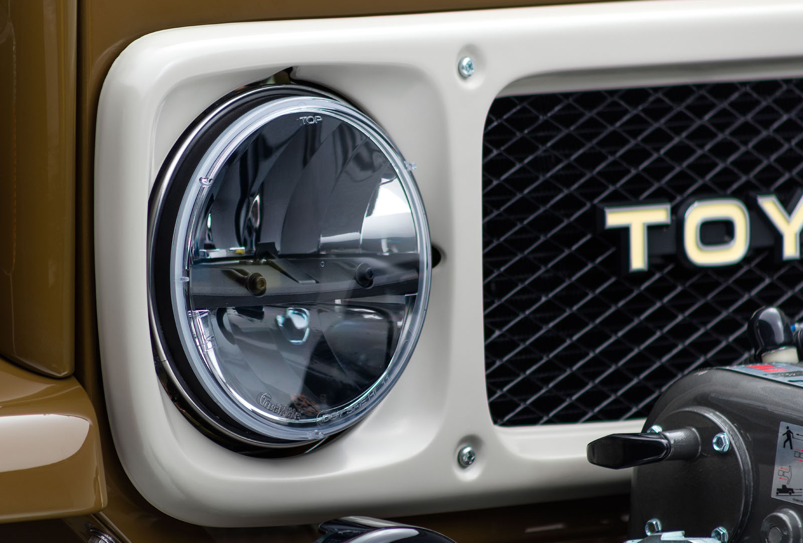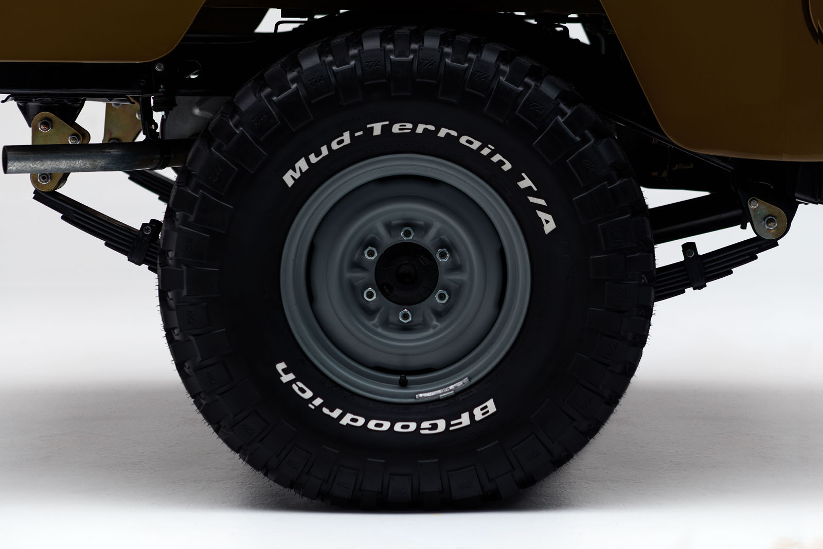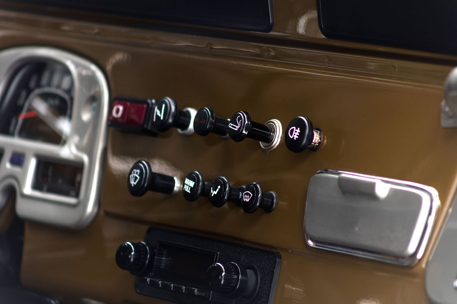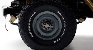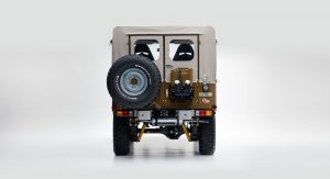 The company completed a full frame-off restoration that saw it rebuild the original engine along with the power steering system and front disc brakes. They installed a new carburetor, suspension, starter motor, pumps, aluminum radiator and five-speed manual transmission, and added a custom roll cage, fire suppression system, LED headlamps, winch… the works.