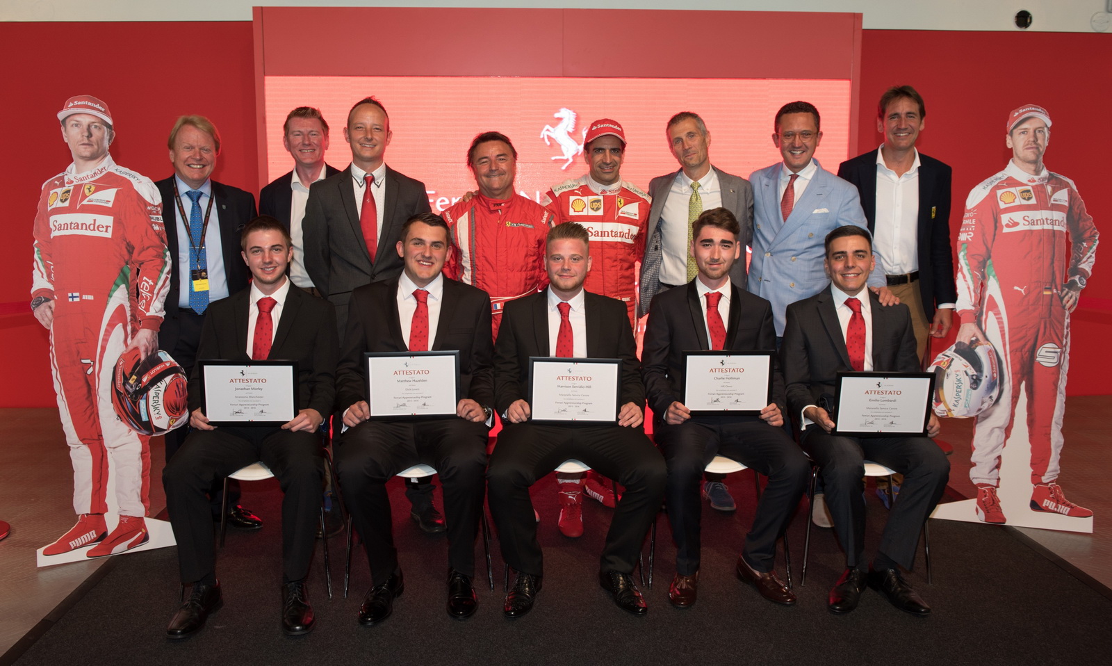 Having completed 3 years of technical training in the Apprentice workshop at Ferrari North Europe’s head office and with the Official Dealer, five new Service Technicians were welcomed to the dealer network, in a graduation ceremony held on Saturday.