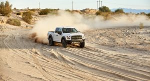 According to Ford Performance engineering supervisor Matt Tranter, “The torque-on-demand transfer case and six-mode Terrain Management System is unique to Raptor in the Ford family of vehicles. It gives you the benefit of a clutched all-wheel-drive system for easy around-town maneuverability in bad weather. Then, there’s Baja Mode, which automatically engages a mechanically locked 4X4 high, and optimizes throttle response, shifting and boost control to provide improved off-road capability. That’s definitely drawing a line in the sand.”