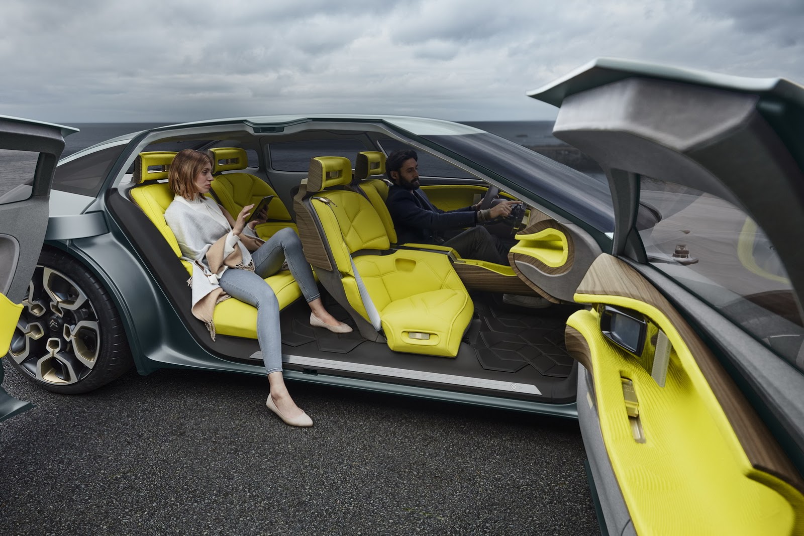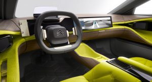 Once inside, the yellow mesh fabric seats surround you, along with the mix of premium materials and the latest technology, joined by a 19-inch screen that proudly sits in the middle of the dashboard to control functions like the sat-nav, air-con and media. Citroen is making sure that rear passengers don’t feel left aside and offers a tablet that can be used to adjust the seats, audio system and climate control.