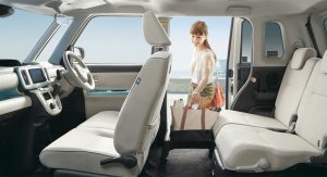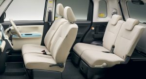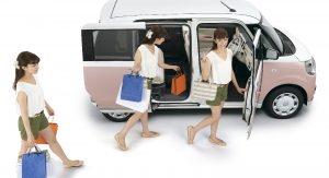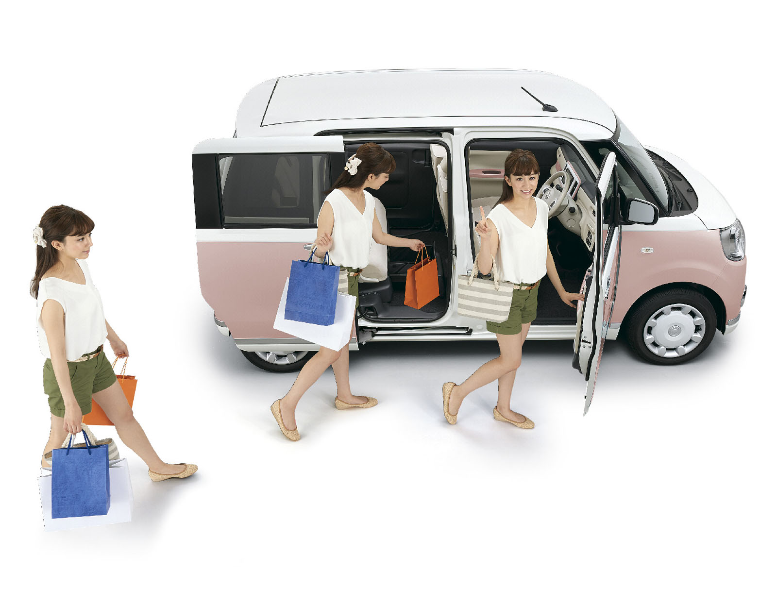 The layout is that of a minivan, albeit shrunken down to pint-size form. So it has conventional front doors, sliding rear doors, and a tailgate. All the better for getting your shopping done – if you go by some of the images below, in which the only males depicted are either about to be run down by or making eyes at the vehicle’s female driver, who might as well be dressed as Sailor Moon.