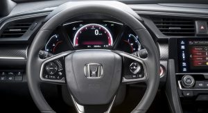 In Europe, Civic hatchback customers will initially have two engines available. The first is the company’s small 1.0-liter, three-cylinder turbocharged VTEC petrol engine that delivers 129 PS (127 hp) at 5,500 rpm and 200 Nm of torque at 2,250 rpm when coupled with the six-speed manual. That torque figure drops marginally to 180 Nm between 1,700 rpm and 4,500 rpm with the available CVT.