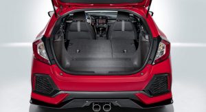 Honda says that the 2017 Civic hatch continues to lead its class for trunk space with it sitting at 478 liters. The 60:40 folding/split rear seats also aid in making it easier to carry large items into the rear of the car.