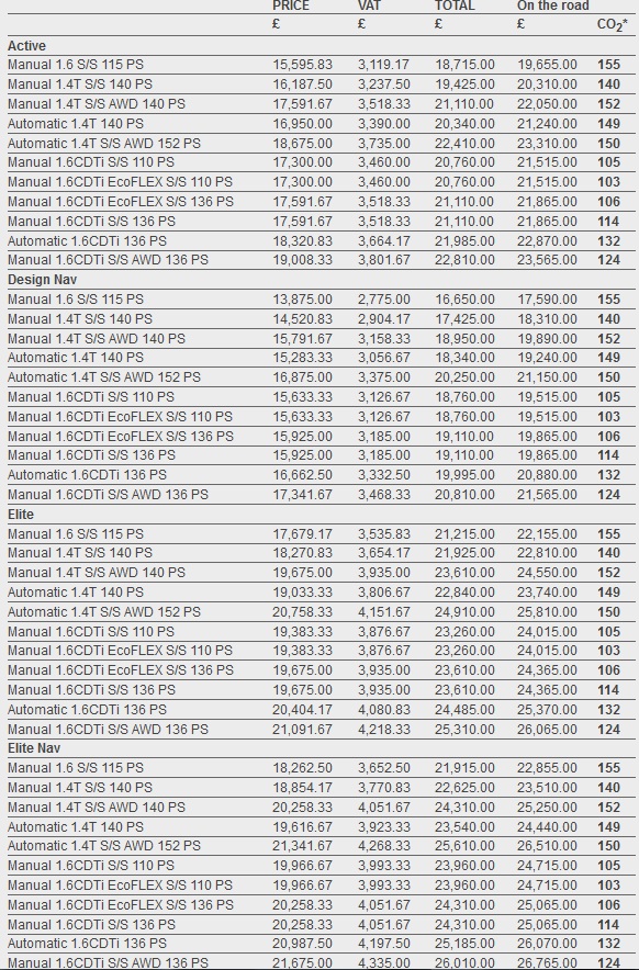 The most affordable version is the Design Nav and it is powered by a 1.6-liter petrol engine rated at 115 PS (113 HP) mated to a manual gearbox. It has a starting price of £17,590 and comes with 18-inch alloy wheels, LED DRLs, front fog lights, silver roof rails, an 8-inch touchscreen with IntelliLink infotainment, OnStar personal connectivity and service assistant.