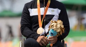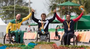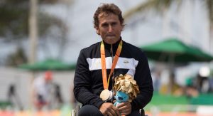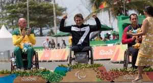 The Italian repeated his success at London’s Paralympic games, completing the 20 km course in just 28 minutes and 36.81 seconds, ahead of Australia’s Stuart Tripp in second and Oscar Sanchez from the U.S. in third.