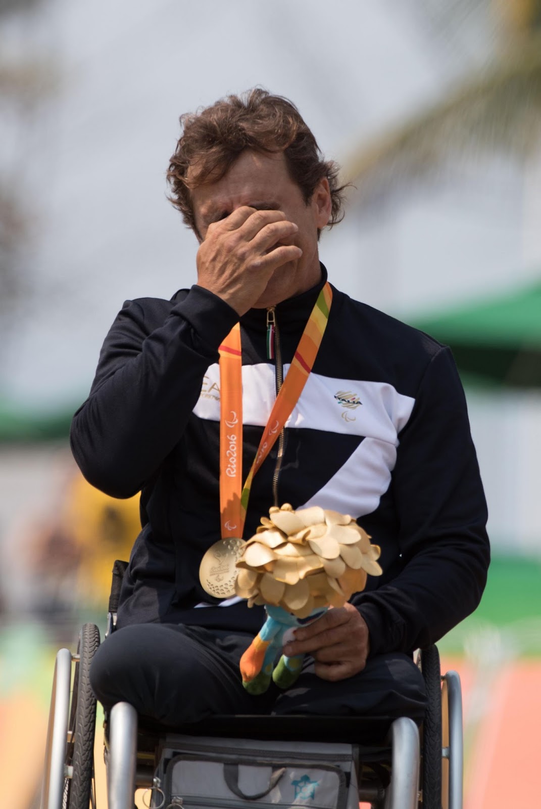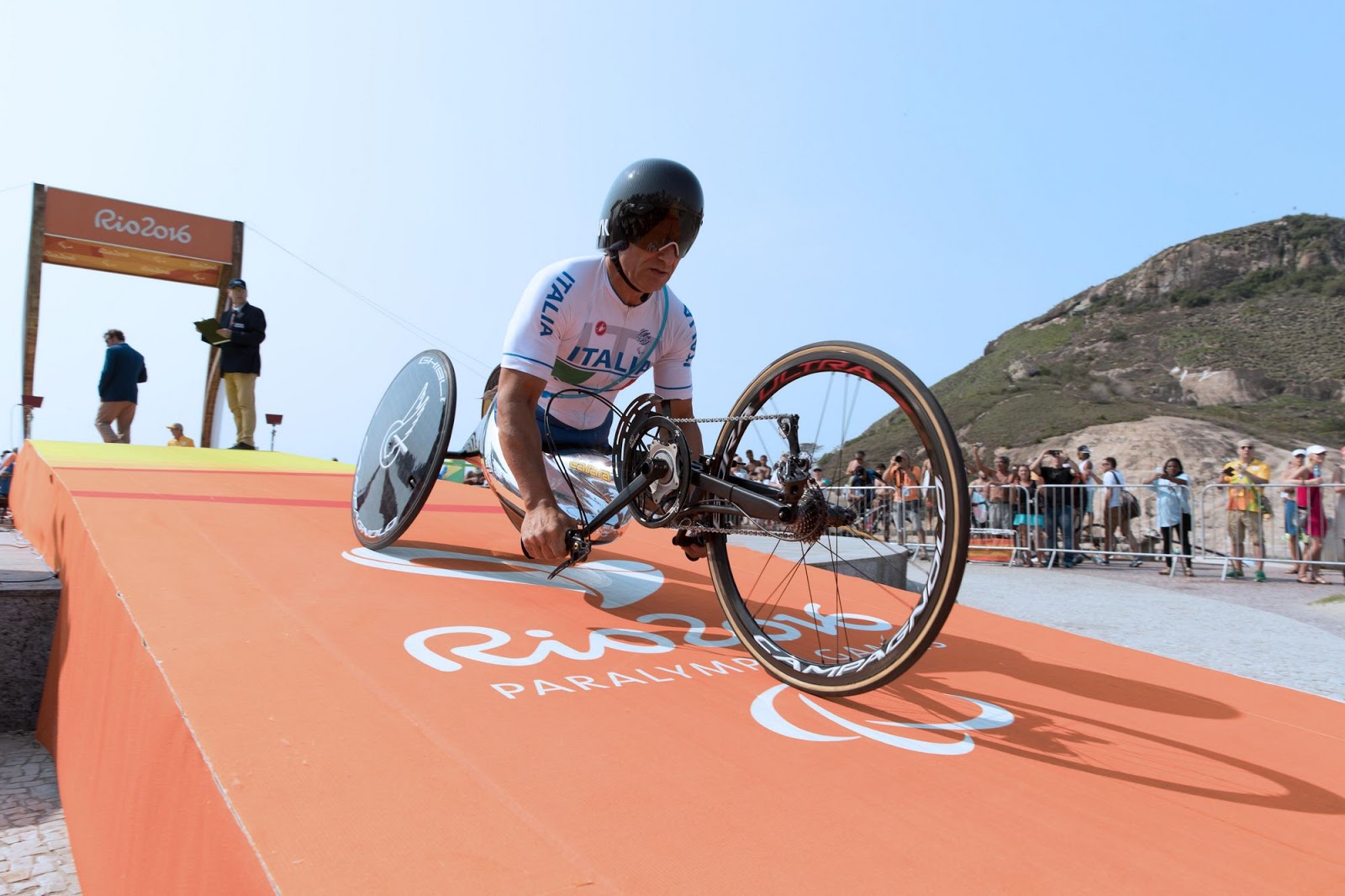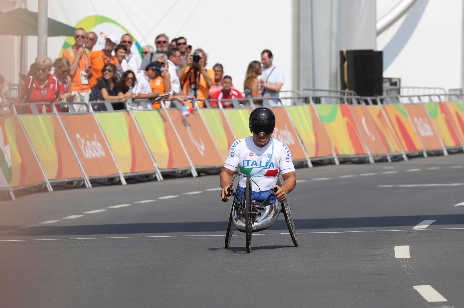 The Italian repeated his success at London’s Paralympic games, completing the 20 km course in just 28 minutes and 36.81 seconds, ahead of Australia’s Stuart Tripp in second and Oscar Sanchez from the U.S. in third.