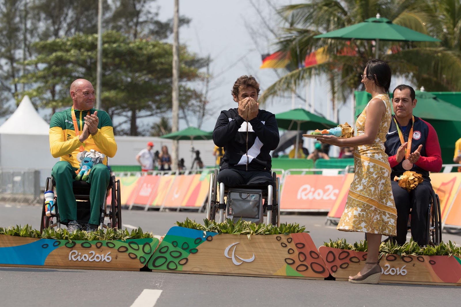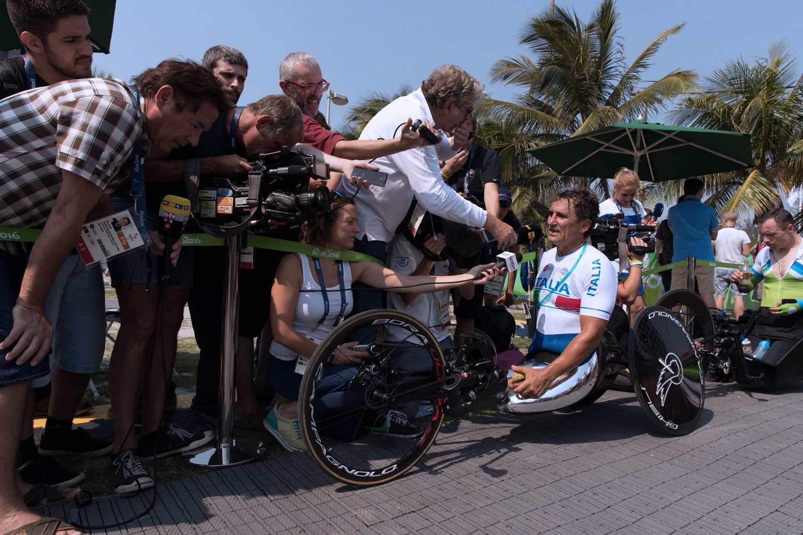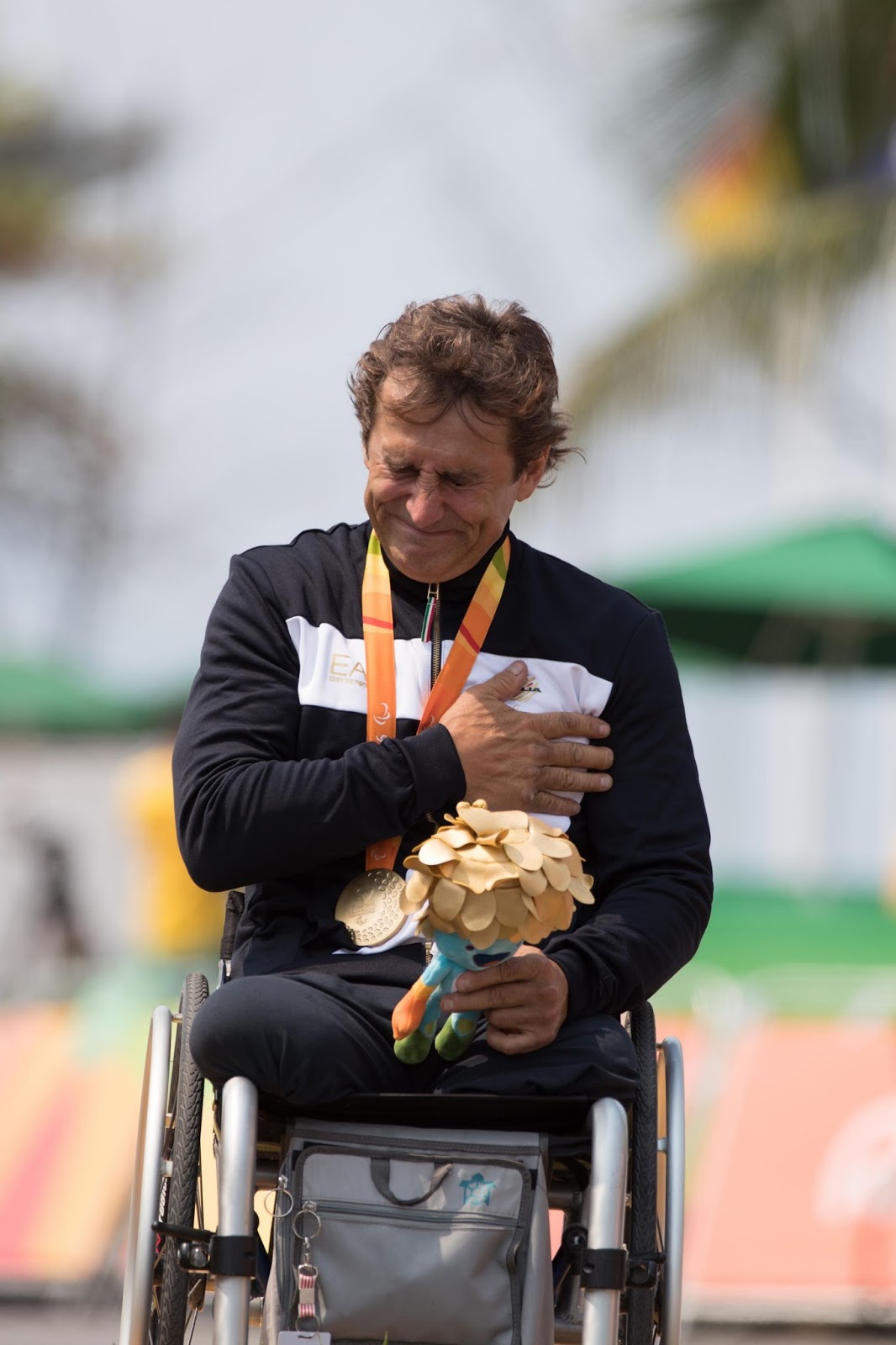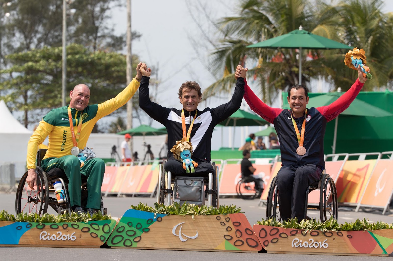 The Italian repeated his success at London’s Paralympic games, completing the 20 km course in just 28 minutes and 36.81 seconds, ahead of Australia’s Stuart Tripp in second and Oscar Sanchez from the U.S. in third.