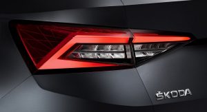 The exterior design features a highly recessed shoulder line, a wide three-dimensional radiator grille, narrow headlights and plenty of highly contoured surfaces. At the rear, Skoda used LEDs as standard for the C-shaped taillights, which means that customers can opt for either one of the three available trim levels and still drive off knowing their lights give off the impression of a fancy crystalline structure.