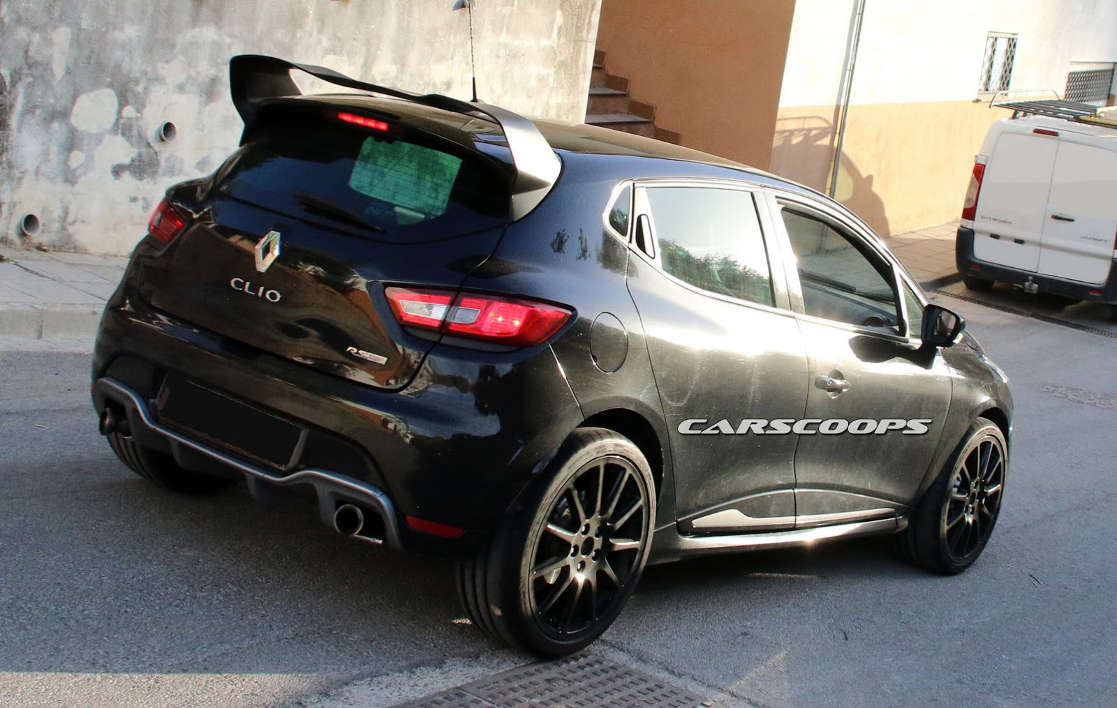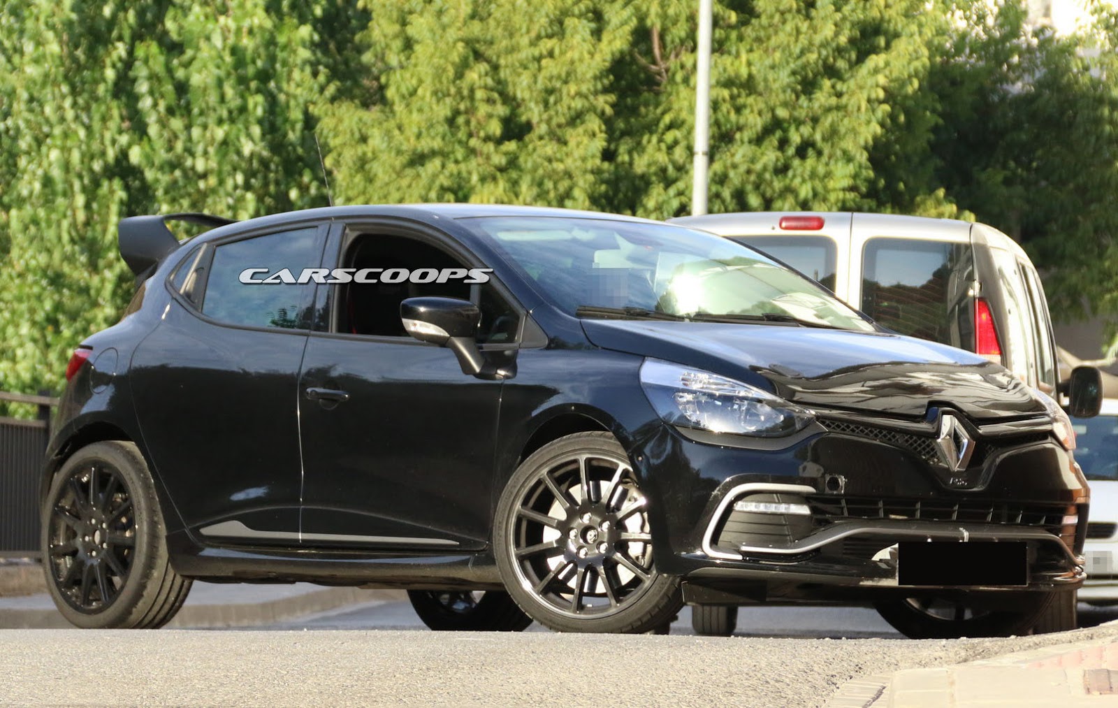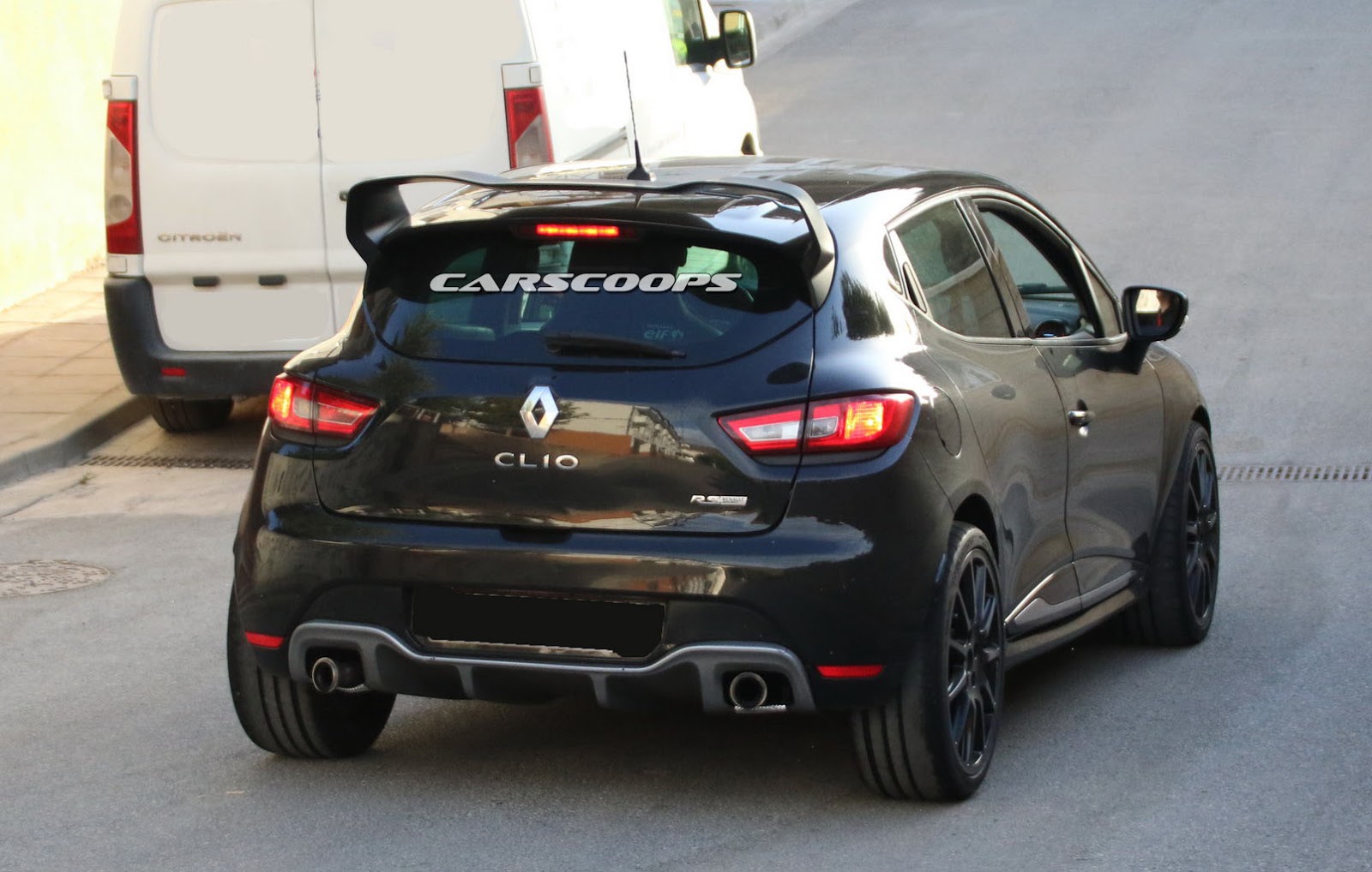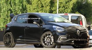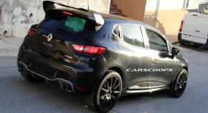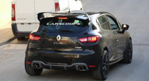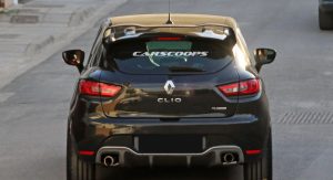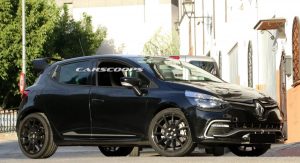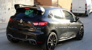 Our spies caught this black prototype out being tested next to the also upcoming Alpine mid-engined sports coupe. Many of the design elements featured on the concept are missing, including the square twin tailpipes of the Akrapovic exhaust, the funky DRLs and the wider fenders, probably as a way of disguising itself as a regular Clio RS.