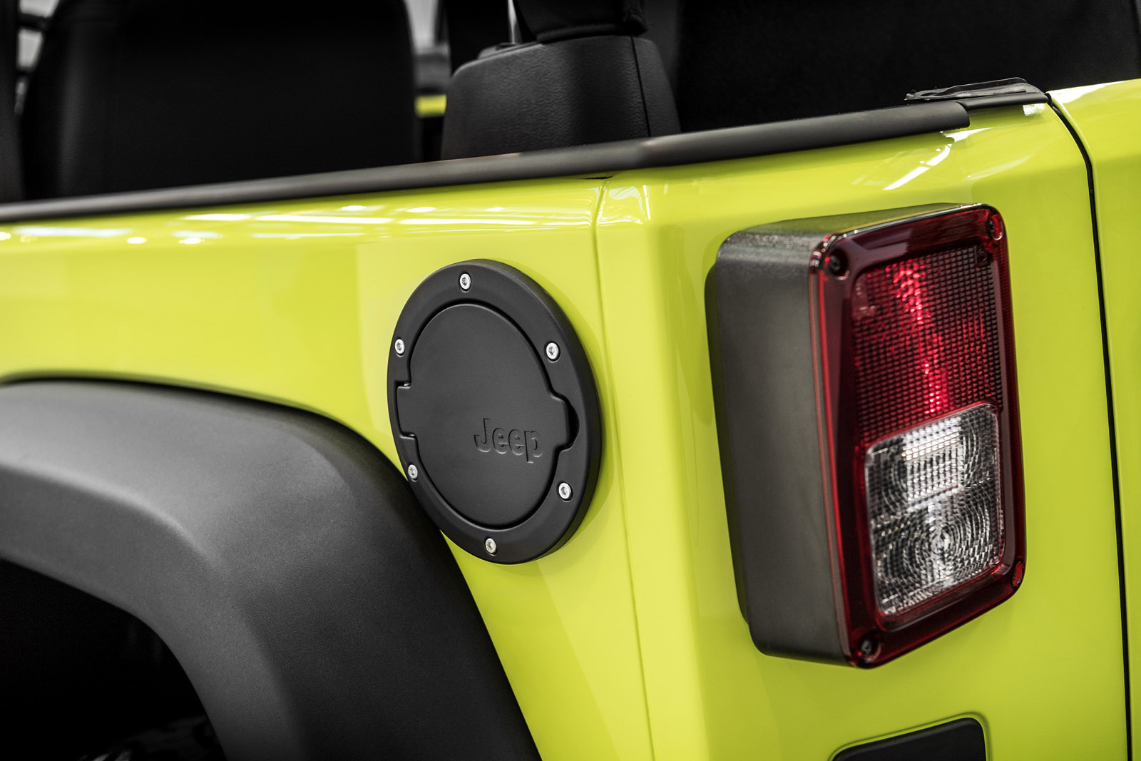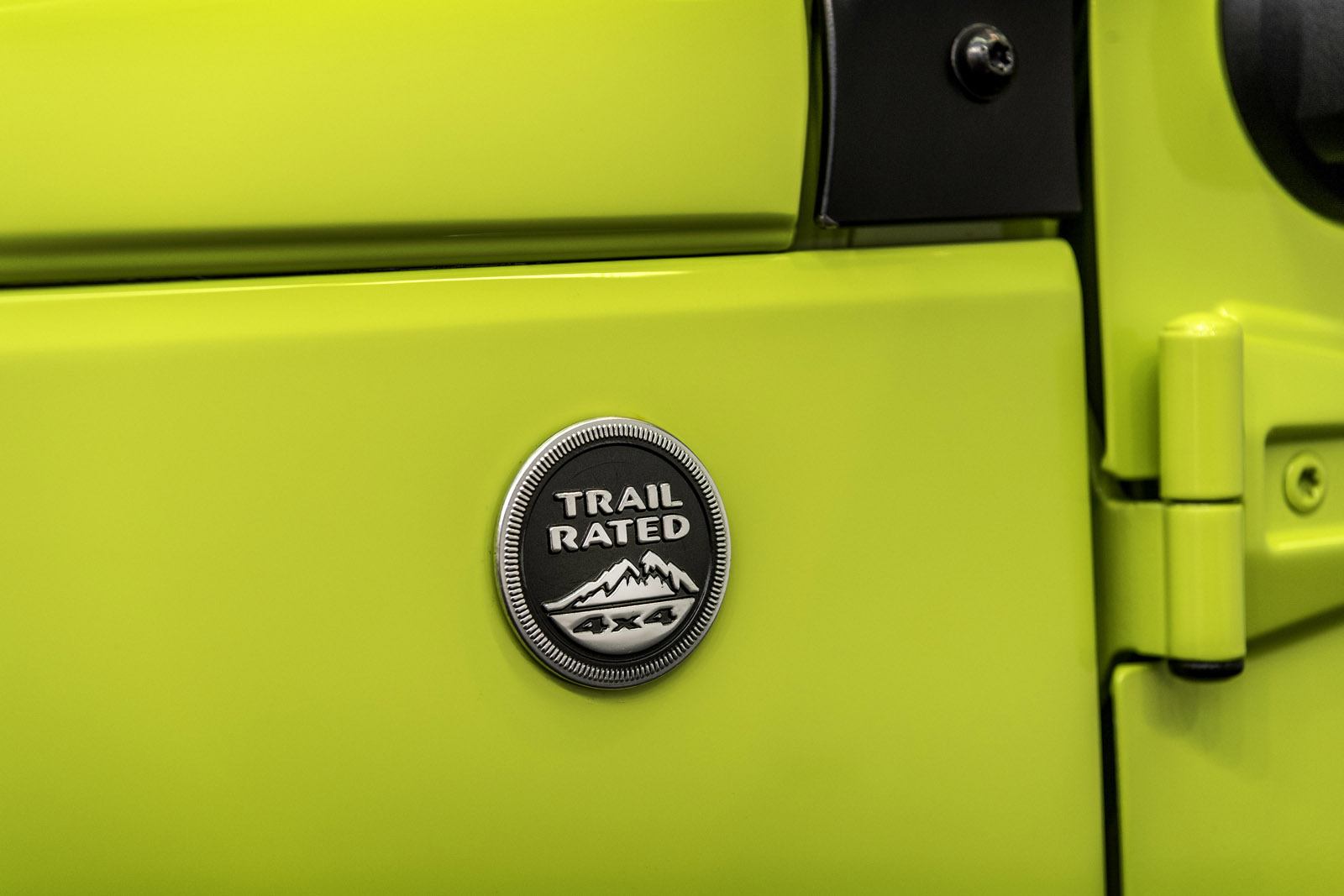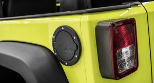 First up is a Wrangler Rubicon that features a MoparONE package and done up in Hyper Green with a black leather interior. It includes a 2-inch lift kit, steering damper, guard plates, and blacked-out 17-inch alloys wearing knobby Hankook Dynapro rubber – all part of the kit that can be purchased straight from the dealership. The customized Wrangler also packs a black light bar with halogen off-road lamps, a hood scoop, new grille, half-doors, and more.