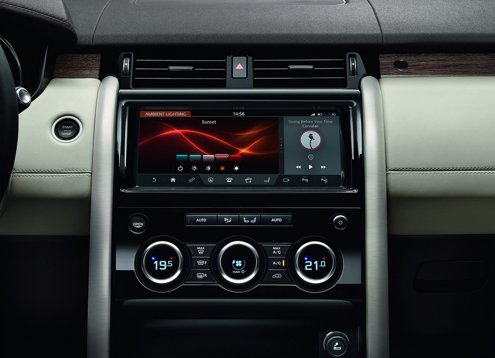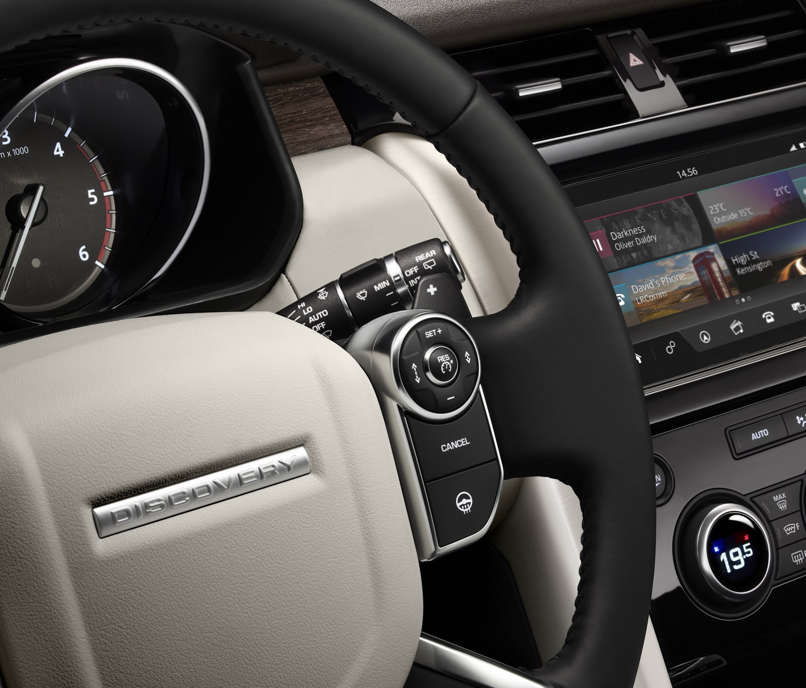 “New Discovery’s revolutionary exterior encases a sophisticated, versatile and spacious interior. The central panel is highly refined, intersected by a strong vertical pillar that’s both clean and customer friendly. This is a prominent interior design cue of the Discovery family. The precise finishes and use of premium materials throughout give customers a relaxing experience and allows intuitive use of the advanced technology under the skin,” explained Mark Butler, Creative Director.