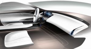 The cabin hosts four individual seats which have speakers integrated to their headrests for a better sound experience. The rose gold trim on the center console and on the door handles will please most of Apple’s fans while a big, ultra-wide modular display can be found behind the steering wheel. Another set of displays are integrated into the front backrests.