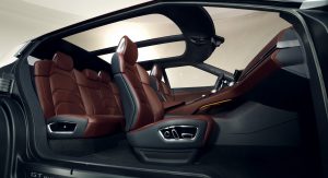 Power for the GT-PHEV Concept comes courtesy of a plug-in hybrid electric powertrain. This setup combines a 25 kWh battery pack mounted under the floor, one electric motor at the front, two electric motors at the rear and a 2.5-liter petrol engine that acts as a generator under normal driving conditions.