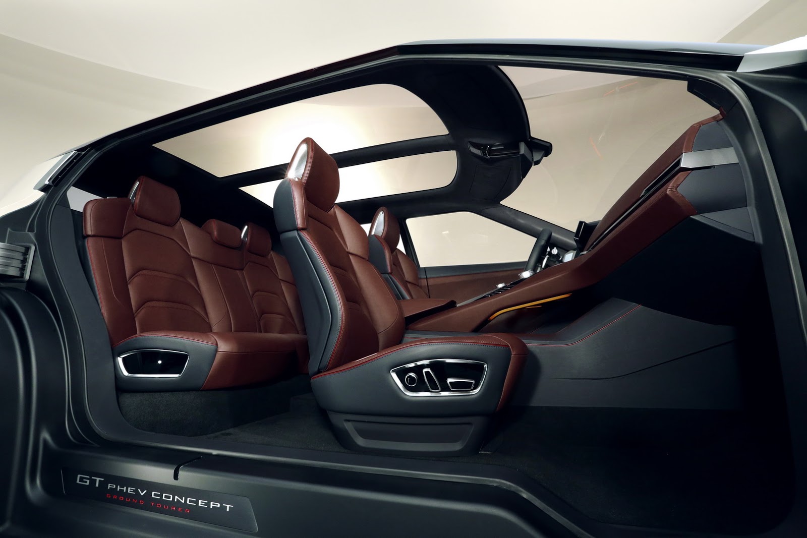 Power for the GT-PHEV Concept comes courtesy of a plug-in hybrid electric powertrain. This setup combines a 25 kWh battery pack mounted under the floor, one electric motor at the front, two electric motors at the rear and a 2.5-liter petrol engine that acts as a generator under normal driving conditions.