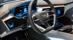 Previewed by the Audi E-tron Quattro Concept, Audi’s virtual dashboard extends on the company’s virtual cockpit by replacing most physical buttons and knobs with three digital displays responsible for all the vehicle’s operations.