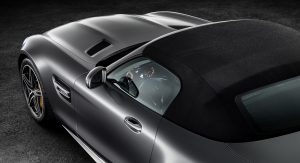 Speaking of which, the AMG GT Roadster tips the scales at 1,595kg, with the GT C Roadster weighing 65kg more, at 1,660kg. AMG’s engineers have also fiddled with the latter’s seven-speed DCT gearbox, giving it a higher first gear, a lower seventh gear and final ratio to make it more responsive, and an extra transmission mode called ‘Race’. This one adjusts the shift strategy for maximum attack on a racetrack, making the gearbox change cogs faster and the engine produce a ‘highly emotive sound’.