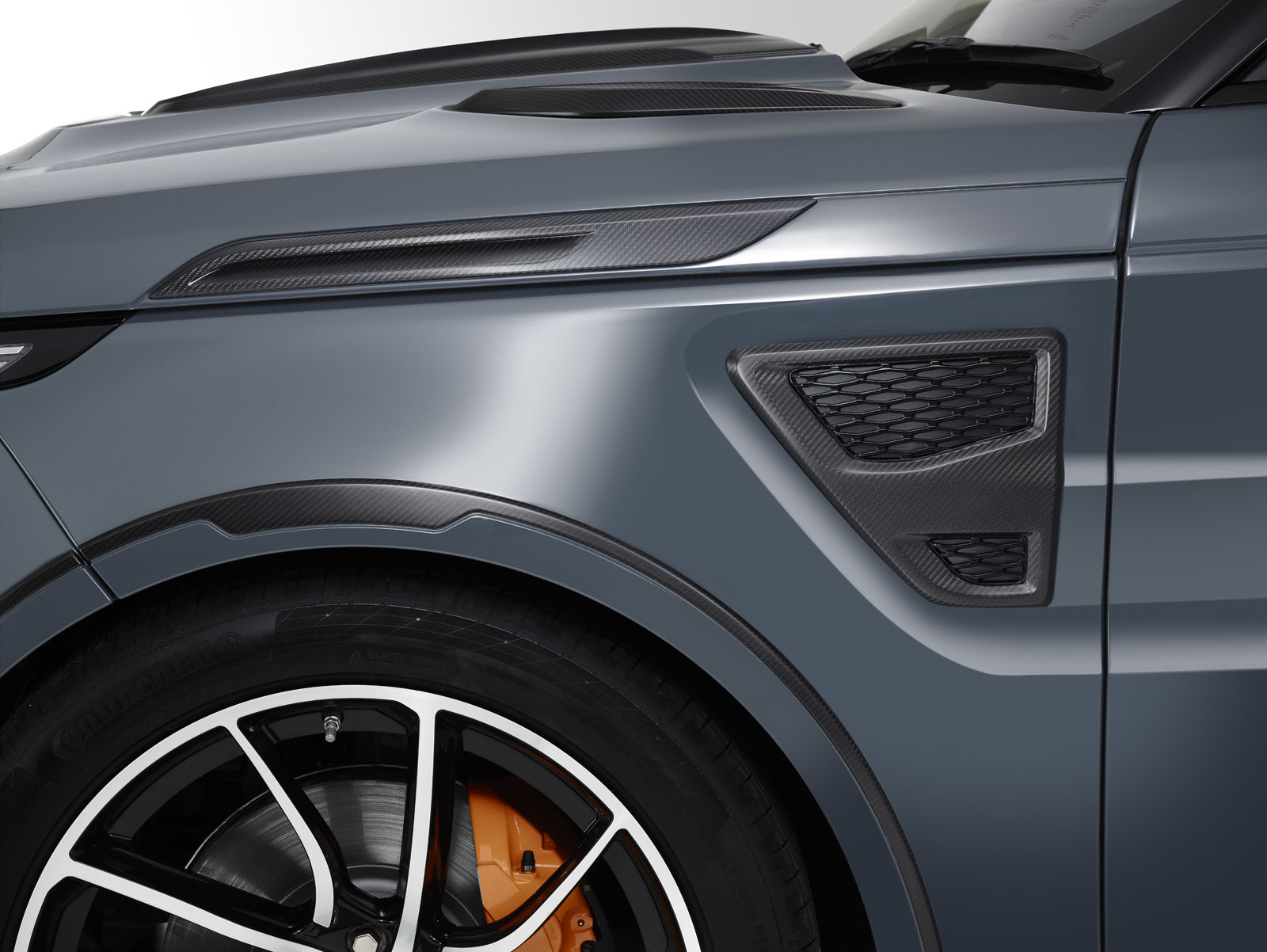 The Supersport is based on the Range Rover Sport SVR, a seven-seat sport-utility vehicle with JLR’s signature 5.0-liter supercharged V8 rated at 550 horsepower. Overfinch has taken it even further, replacing the hood and fitting a new body kit, all made out of carbon fiber and developed with motorsport consultancy Prodrive to both reduce weight and improve cooling.